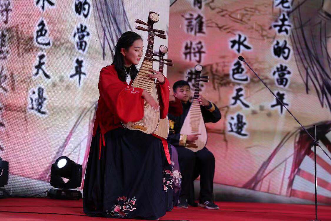 丝竹琵琶,管弦钢琴,弹奏出三中学子蓬勃向上的心声,营造出浓郁的校园艺术氛围。三中是个筑梦的地方,在这里,种类繁多的文化社团、艺术社团、科技社团,为学生们提供了逐梦的舞台。今晚,舞蹈社带来了舞蹈《Gashina》,流行音乐社带来了“三中好声音”合唱《你曾是少年》,动漫社和英语社强强联手,带来了国风扇子舞《寄明月》,吉他社的电声乐队一曲《年少有为》奏出了中国少年的铿锵志气。教师节目与学生节目同台竞技,教师合唱团一首男声小合唱《走向复兴》,用嘹亮的歌声歌颂祖国的复兴之路,歌唱改革开放40周年的华美篇章。