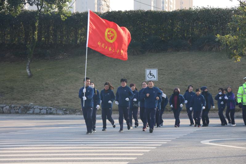 另一组由副校长叶叶带领其余教职员工参加我校元旦健步走活动。健步走路线为三中——育才路——湖东路——市政府广场——天井湖公园——市政府广场——湖东路——育才路——三中,全程4公里。