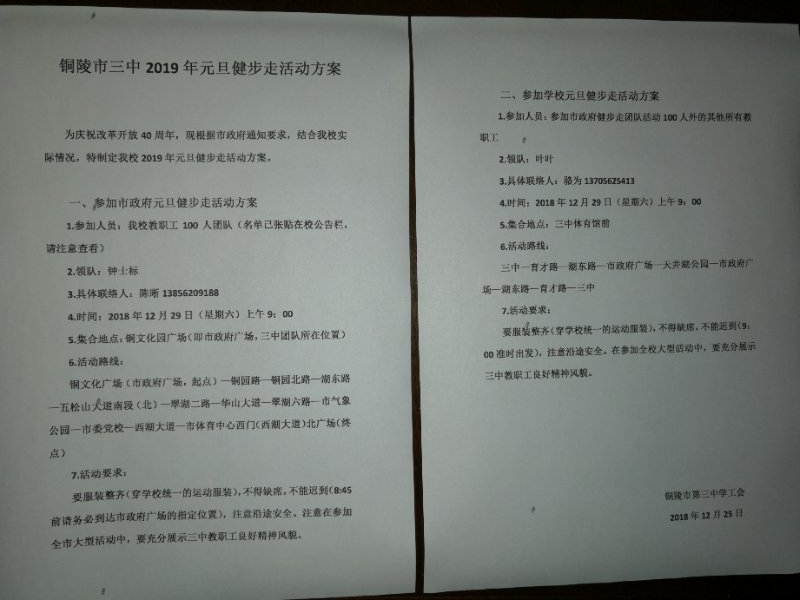 为庆祝改革开放四十周年,迎接2019年元旦,营造欢乐和谐的节日氛围,2018年12月29日上午,铜陵市第三中学举行元旦健步走活动,用健康的生活方式开启新的一年的到来。