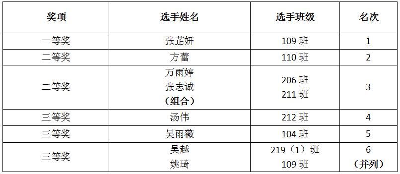 经现场评分,共七位(组)选手荣获一二三等奖。具体名单如下: