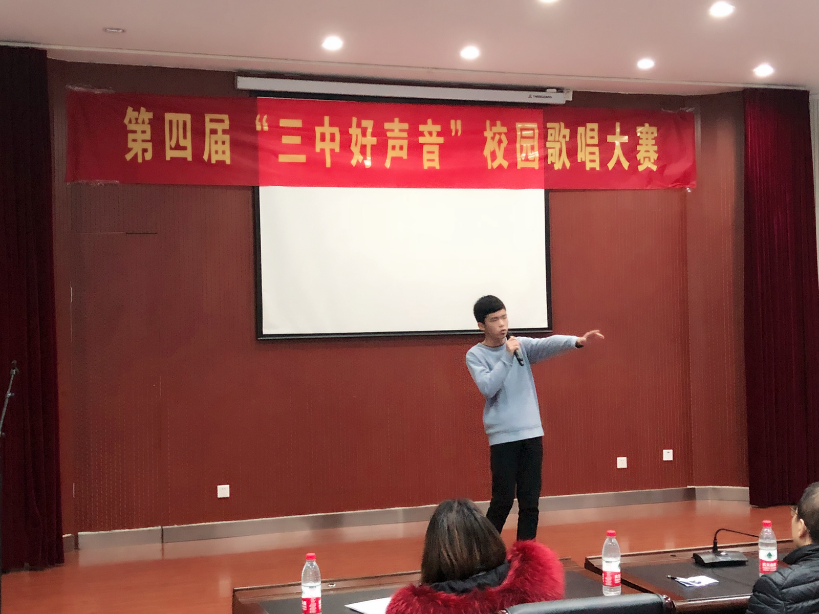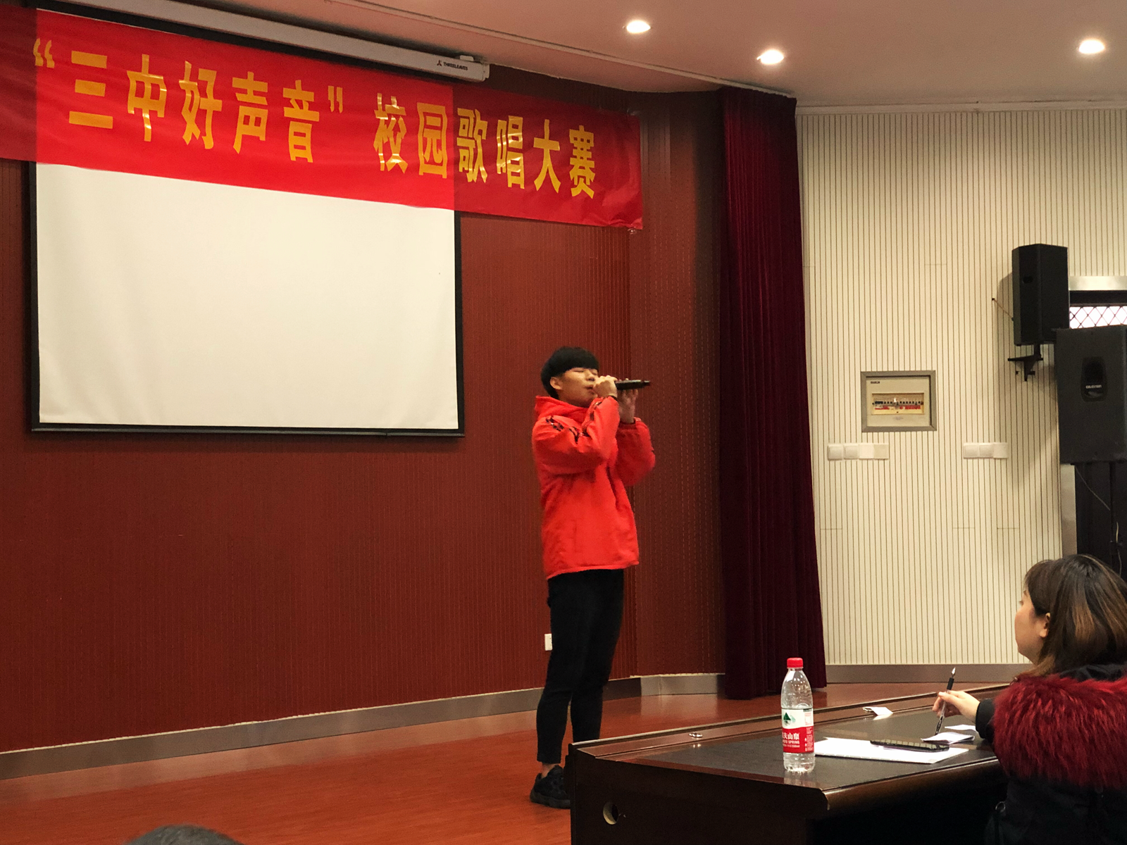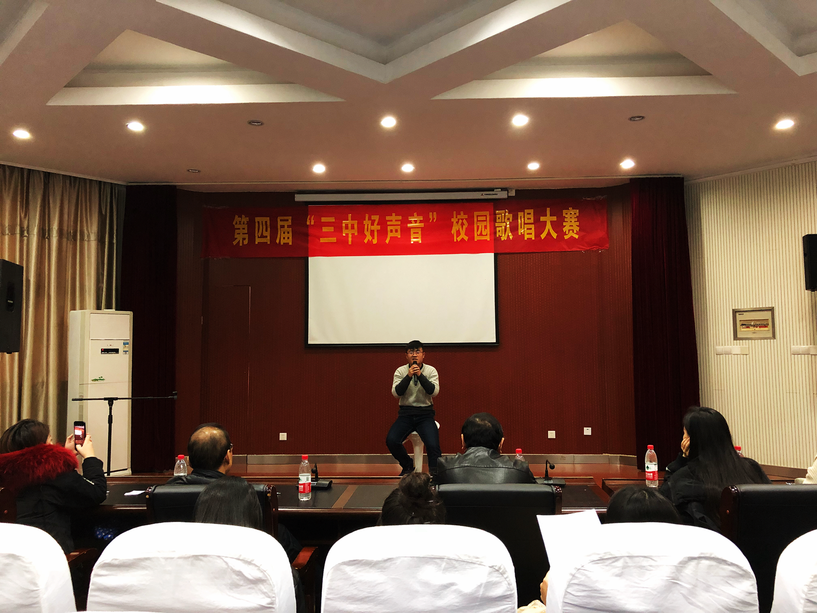 12月2日,在校团委和艺术组的指导下,经我校优秀学生社团——流行音乐社精心策划和筹备,第四届“三中好声音”校园歌手大赛决赛在校多功能厅如期成功举办。现场100多名师生、家长观赛。为确保选拔水准,从不同角度评价参赛选手,本次活动特邀请铜陵市声乐协会副会长、市中学音乐学科带头人、艺术组组长尹向前老师,以及艺术组程星、吴丽萍两位青年骨干教师,音乐爱好者刘伍兵老师,流行音乐社社长212班周梦云同学担任评委。
