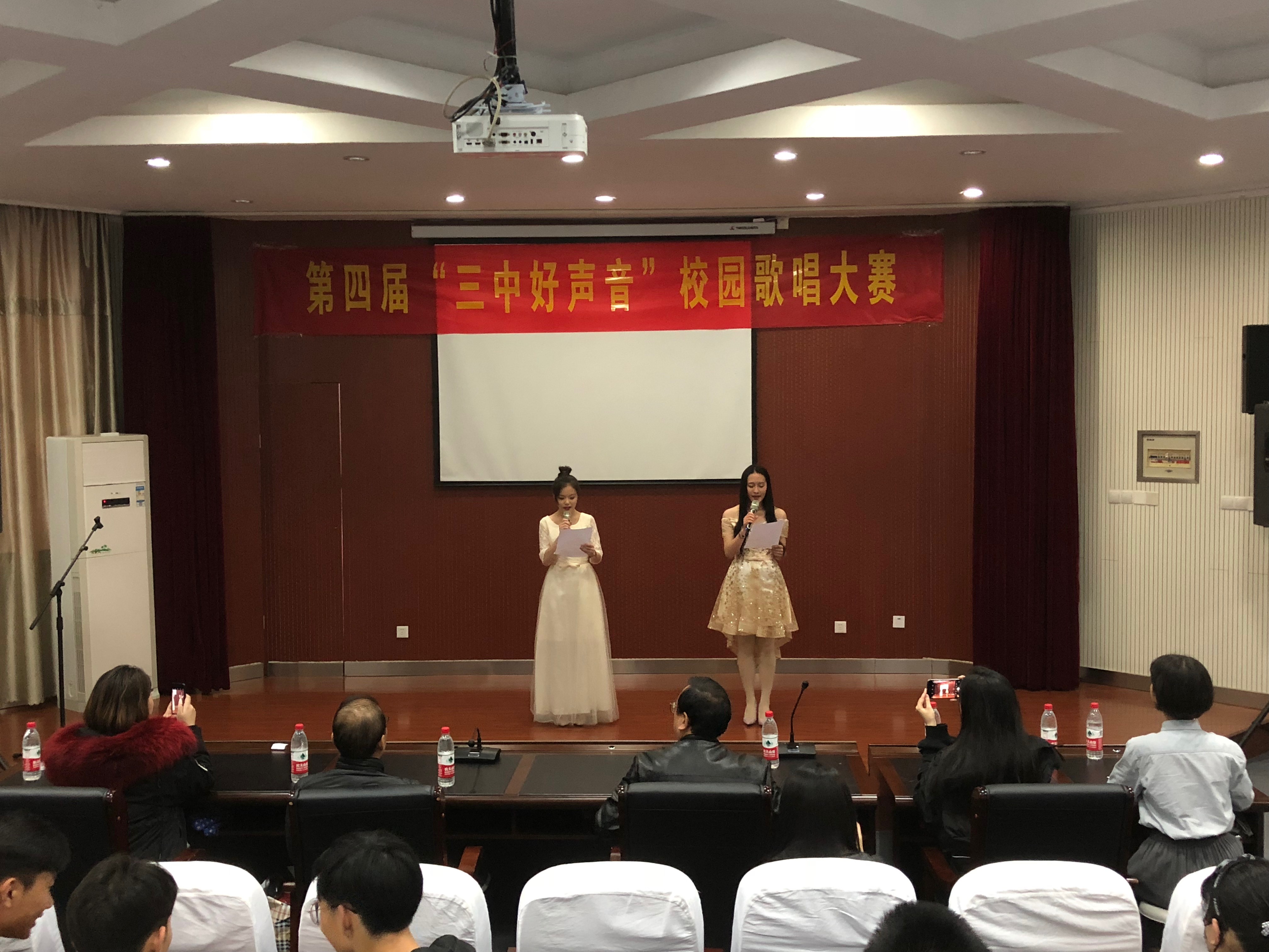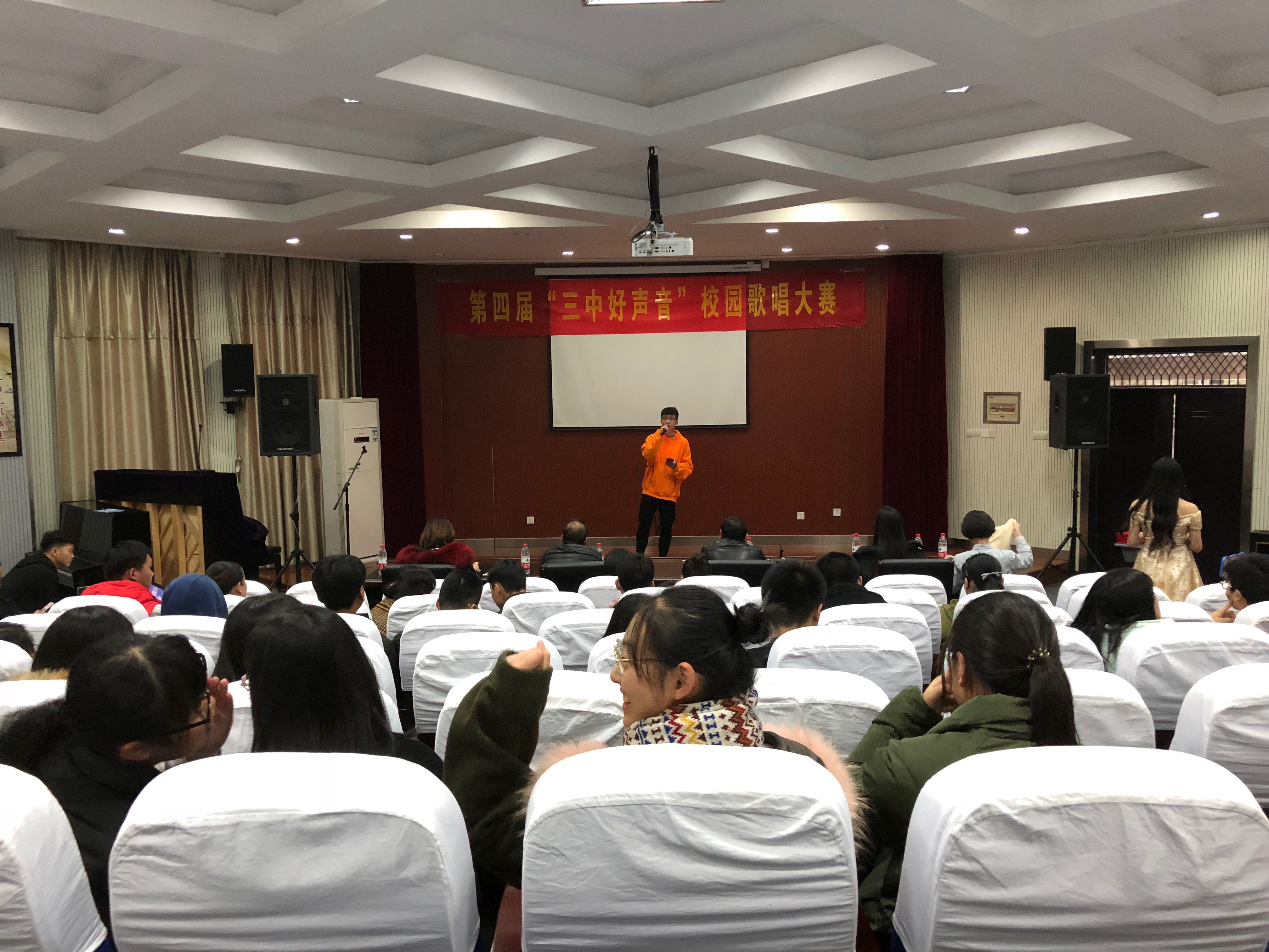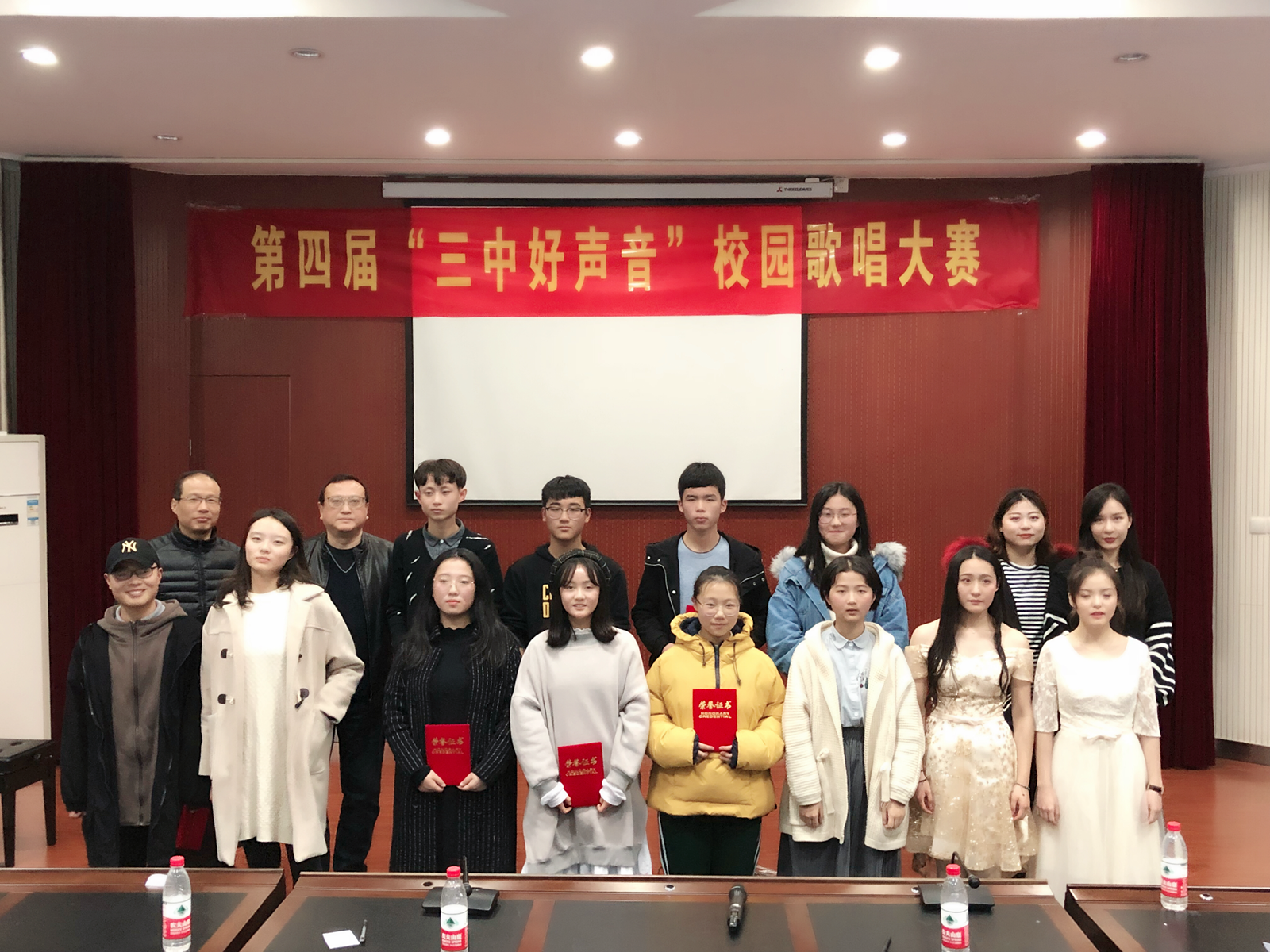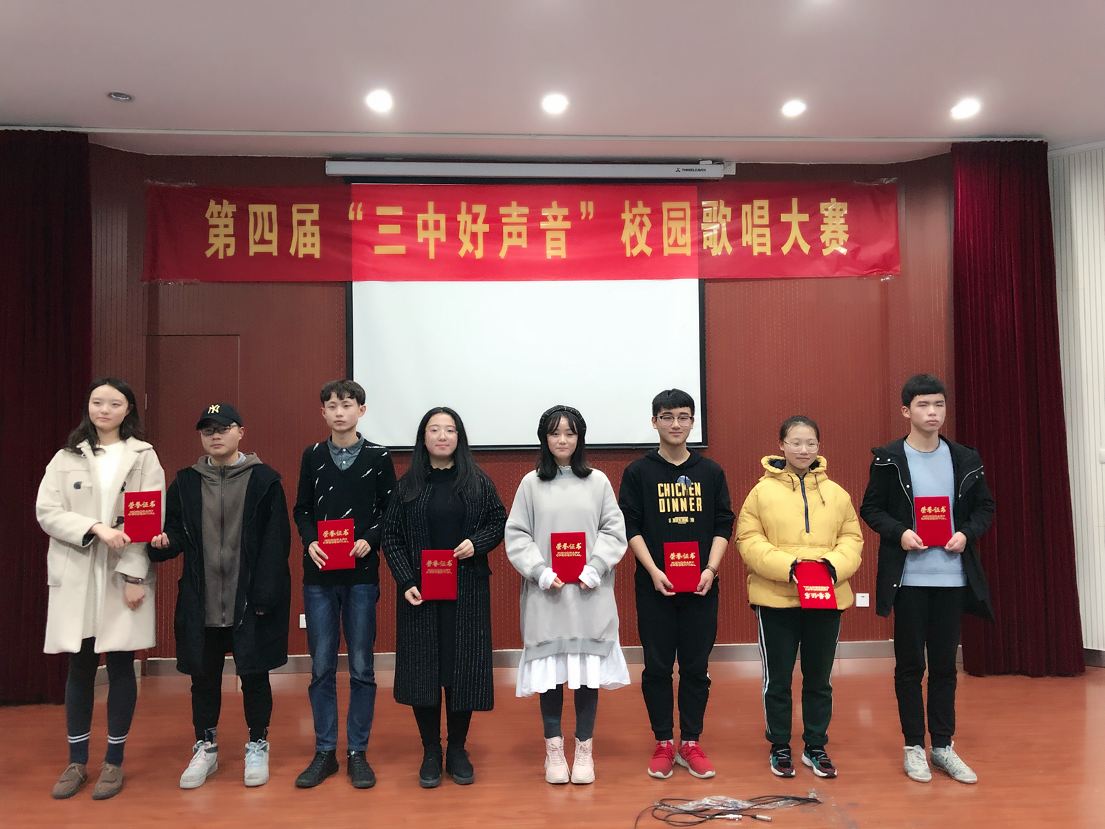 12月2日,在校团委和艺术组的指导下,经我校优秀学生社团——流行音乐社精心策划和筹备,第四届“三中好声音”校园歌手大赛决赛在校多功能厅如期成功举办。现场100多名师生、家长观赛。为确保选拔水准,从不同角度评价参赛选手,本次活动特邀请铜陵市声乐协会副会长、市中学音乐学科带头人、艺术组组长尹向前老师,以及艺术组程星、吴丽萍两位青年骨干教师,音乐爱好者刘伍兵老师,流行音乐社社长212班周梦云同学担任评委。