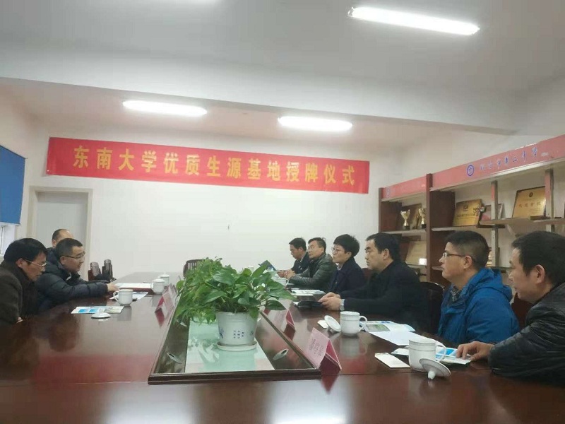 12月5日下午,“东南大学优质生源基地”授牌仪式在铜陵市三中行政楼会议室举行。东南大学学生处副处长蔡亮教授、电子科学与工程学院党委书记汤勇明教授、教务处邱文教教授,铜陵市三中副校长叶叶、副校长张国荣、教务处主任张尤俊、外联科主任梁波、高二年级部副部长潘鸣皋、优秀教师代表吴良富等参加了仪式。