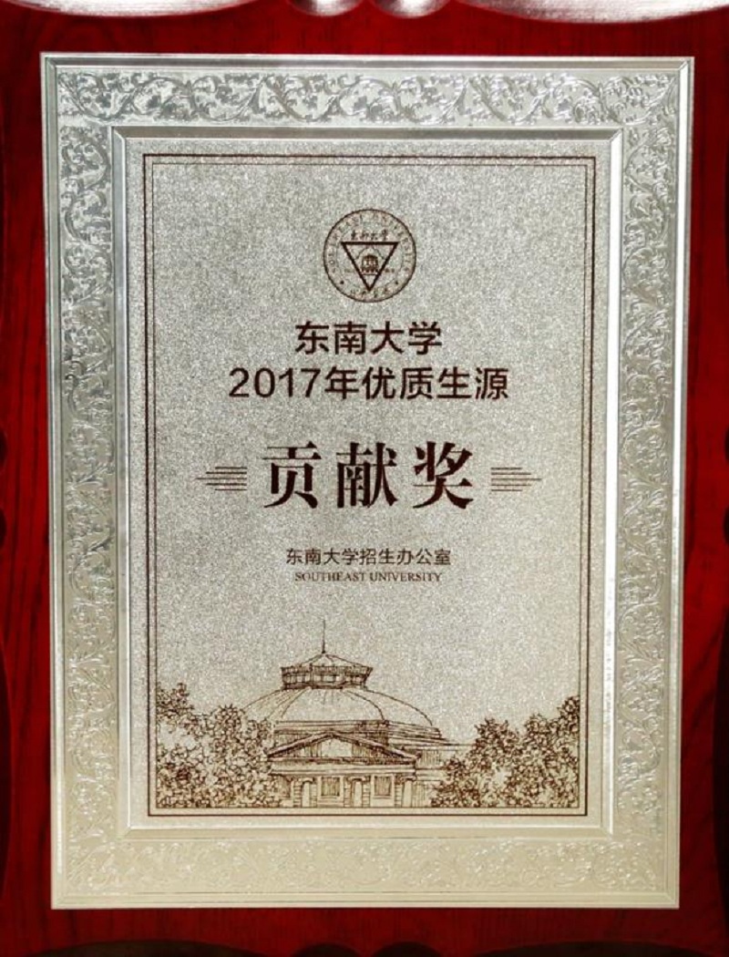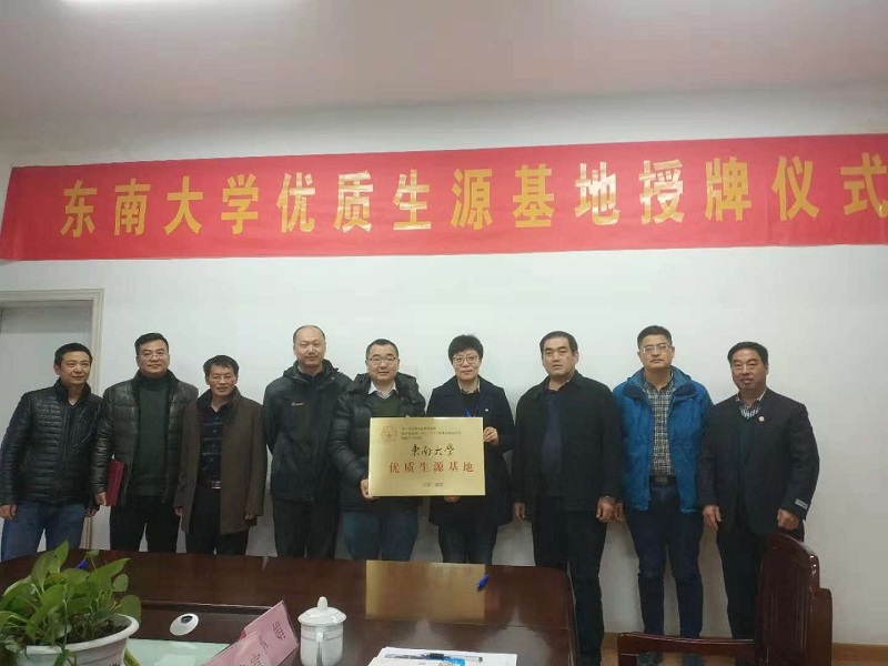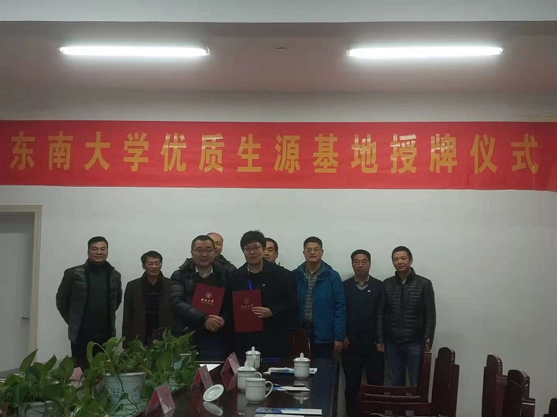 东南大学和铜陵市三中签署优质生源基地合作办学协议,东南大学学生处副处长蔡亮教授向铜陵市三中授予“东南大学优质生源基地”匾牌。