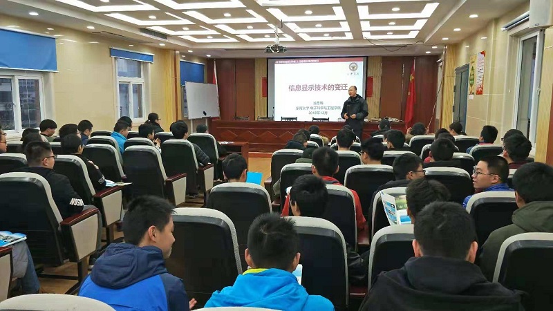 电子科学与工程学院党委书记汤勇明教授还向铜陵市三中80余名学生作了题为《信息显示技术的变迁》的专题讲座,报告深入浅出,在学生中引起了强烈的反响。