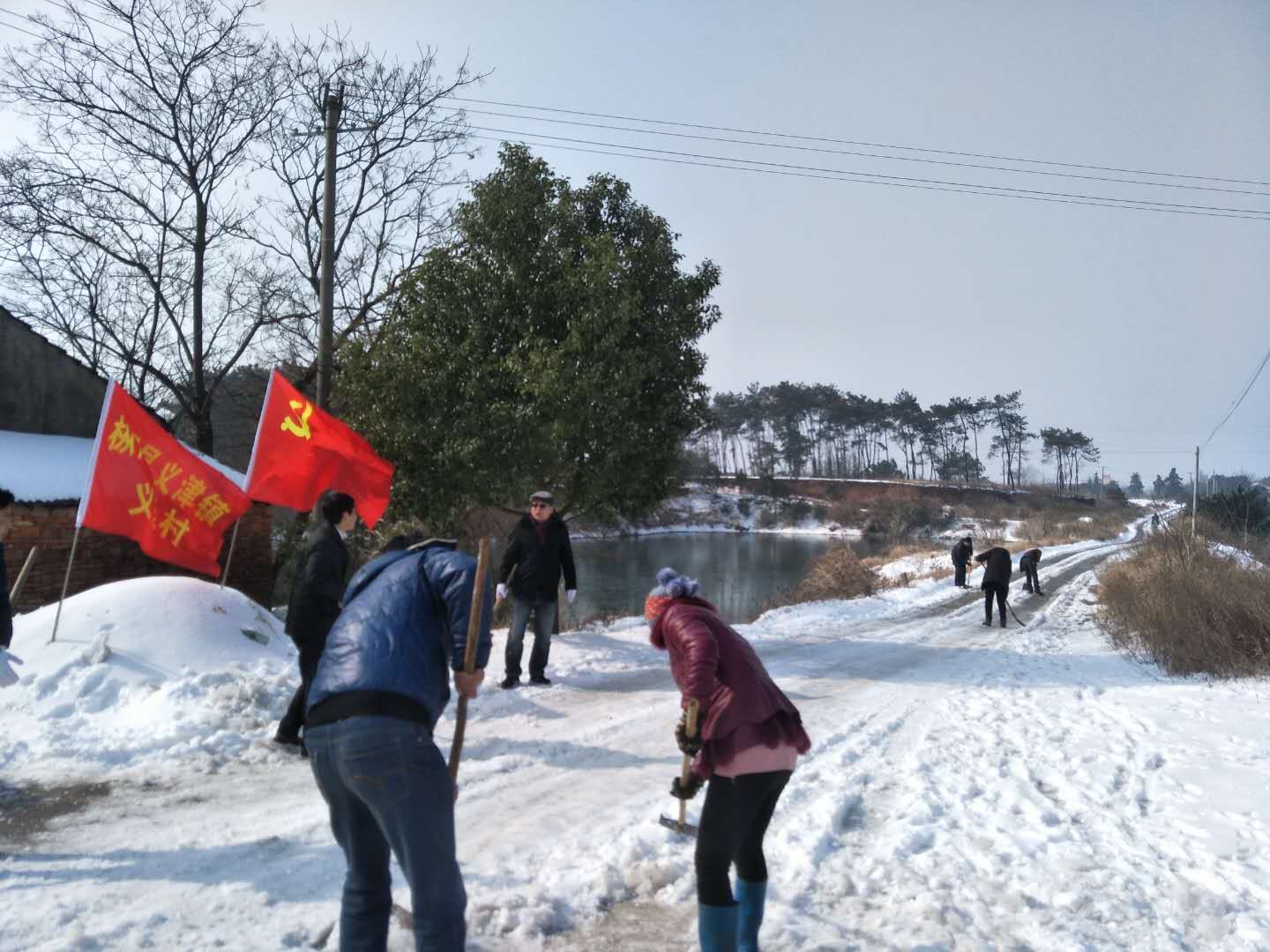 义津镇通往浮山镇的“义浮路”经过我村潘叽村民组处,道路两旁各有一口深达十几米深的原义东窑厂取土潭,现在已经成为水塘,并且此处还是坡道,连日的大雪,路面积雪结冰,给附近的村民出行和过往的车辆带来不便,为最大限度消除安全隐患,保障道路畅通,充分发挥党员干部先锋模范作用,枞阳县义津镇义东村党委与市三中驻村扶贫扶贫工作队紧急动员部署,带领村两委干部及党员志愿者开展扫雪除冰保畅通工作。