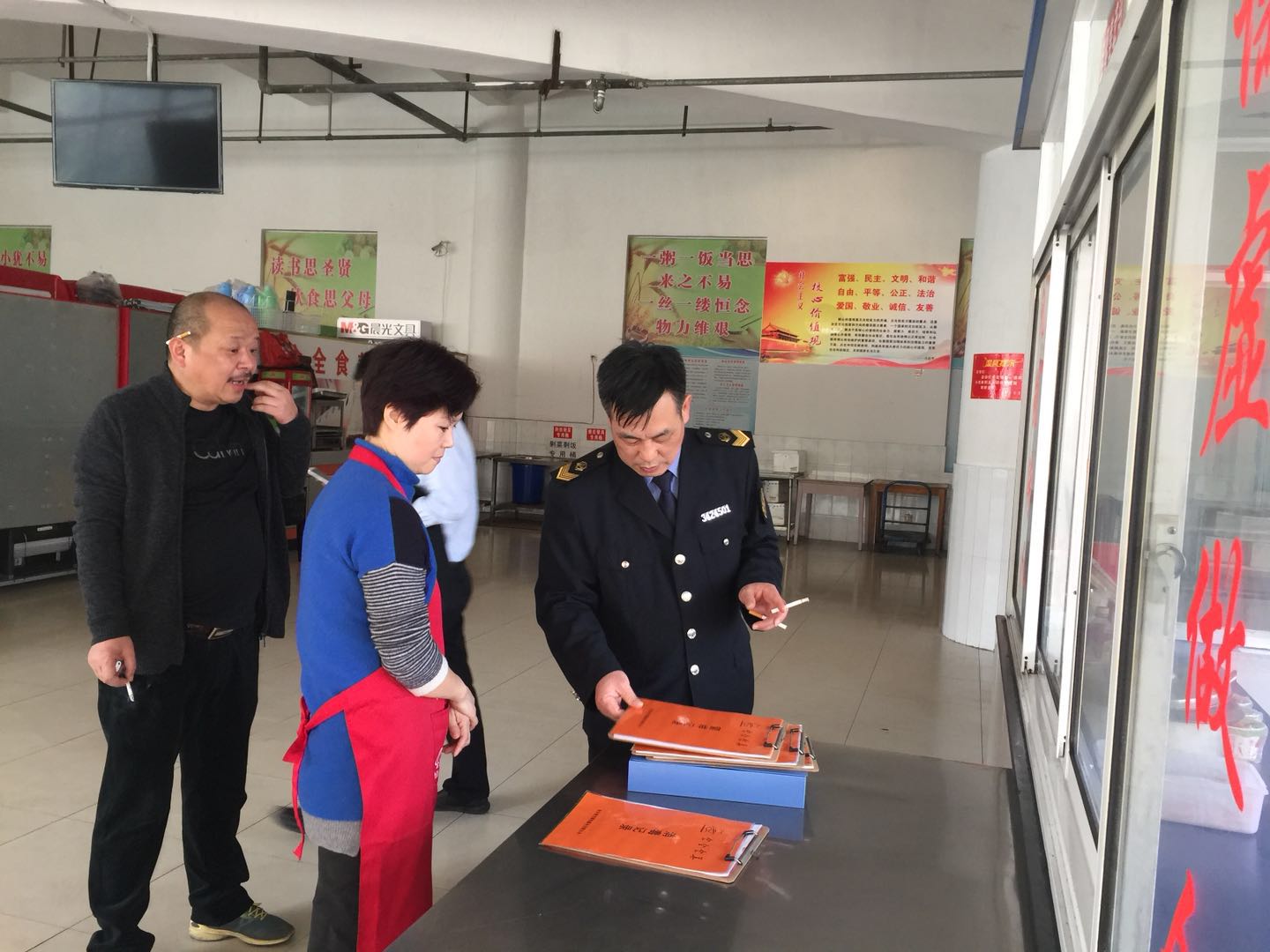 在本次专项检查中,重点检查,一是学校食堂,重点对食堂后厨的环境卫生、原材料采购、食品留样、索证索票、餐饮具清洗消毒的情况进行了检查。
