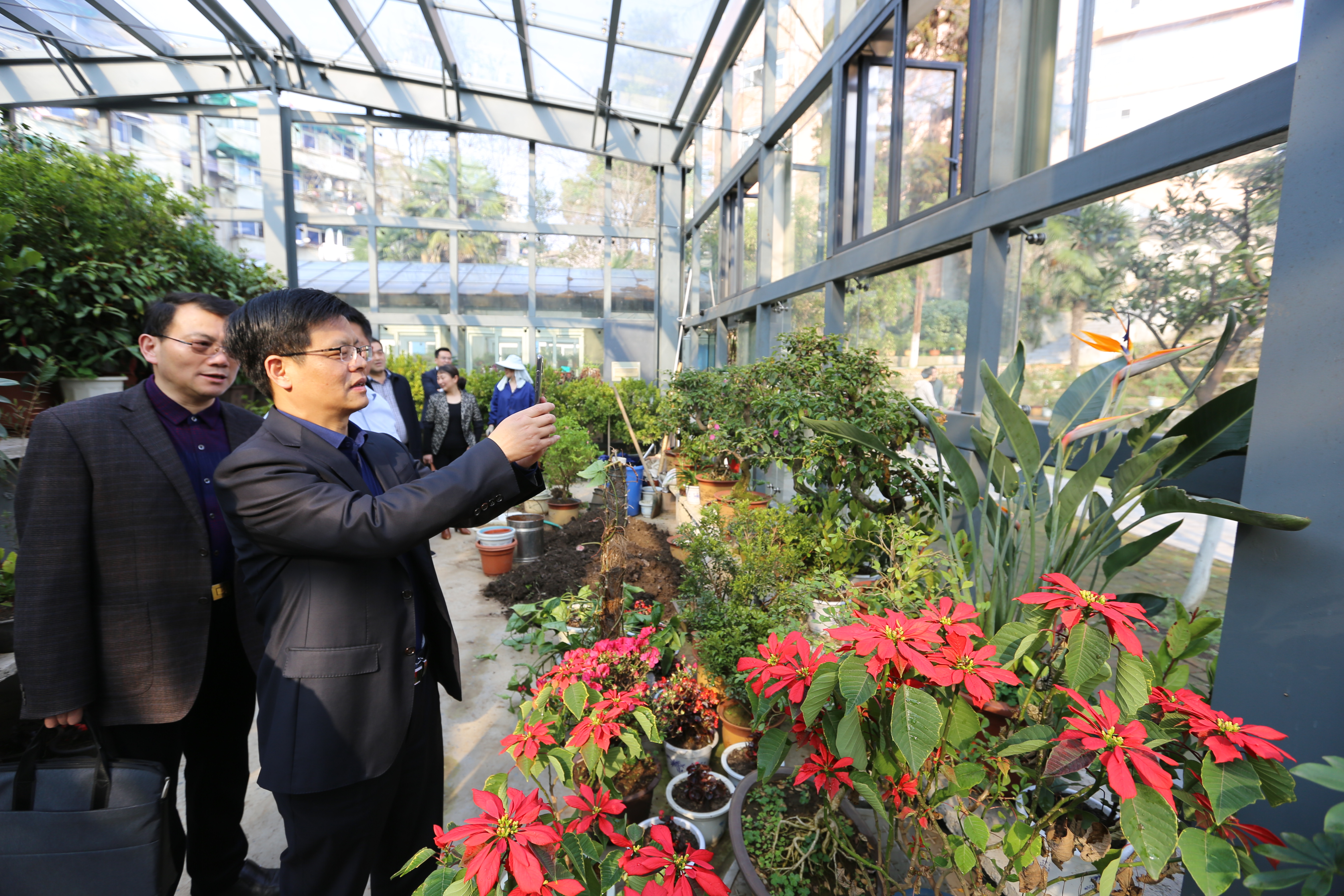 在体育馆,谷局长询问了体育馆日常教学和向社会开放情况;在植物园,谷局长了解了多种名贵植物的生长环境和培植设施,对我校植物园上千种植物赞不绝口,在已经有两百年的紫藤树前,谷局长拿起手机拍摄,称赞这些紫藤是“生命力在奔放”,预示着对崇高美好的生活热爱;在五松山文化碑廊,谷局长饶有兴致地观赏和了解历代名家的碑帖,并仔细端详,不时询问工作人员相关朝代史实内容;在生态馆,谷局长仔细了解了各种陆地海洋生态动物的标本和相关教学研究情况。