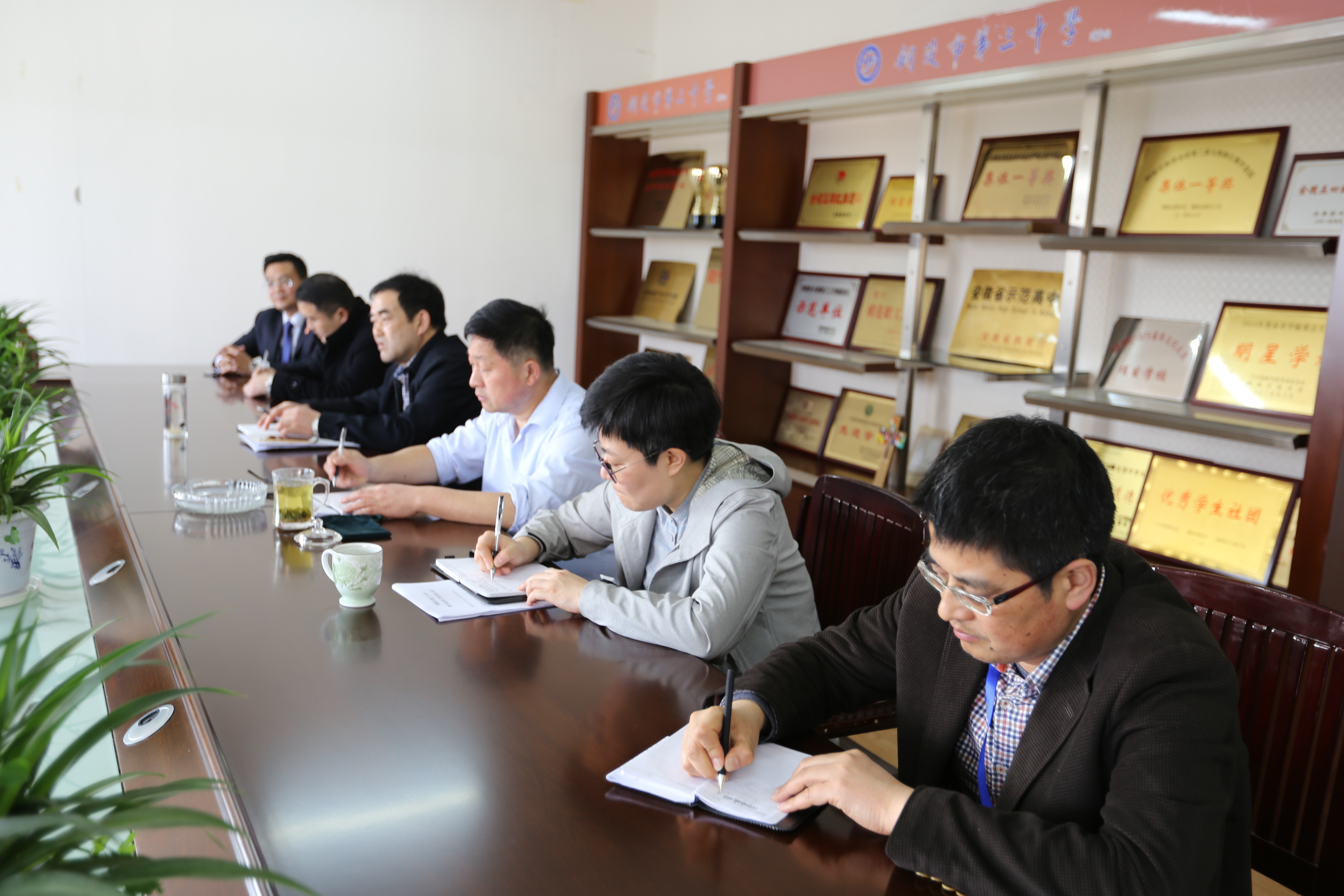 市教育局工会主席郑国对三中这几年取得的教育教学成绩表示肯定,他希望三中在学生资助工作上更进一步,把党和国家的温暖送到每一位需要的学生心中。郑国主席对我校政府性投资项目提出了建议和要求,他希望学校高度重视,按质按量完成好新大楼的建设工作。郑国主席还就学校安全问题提出了一些建议。