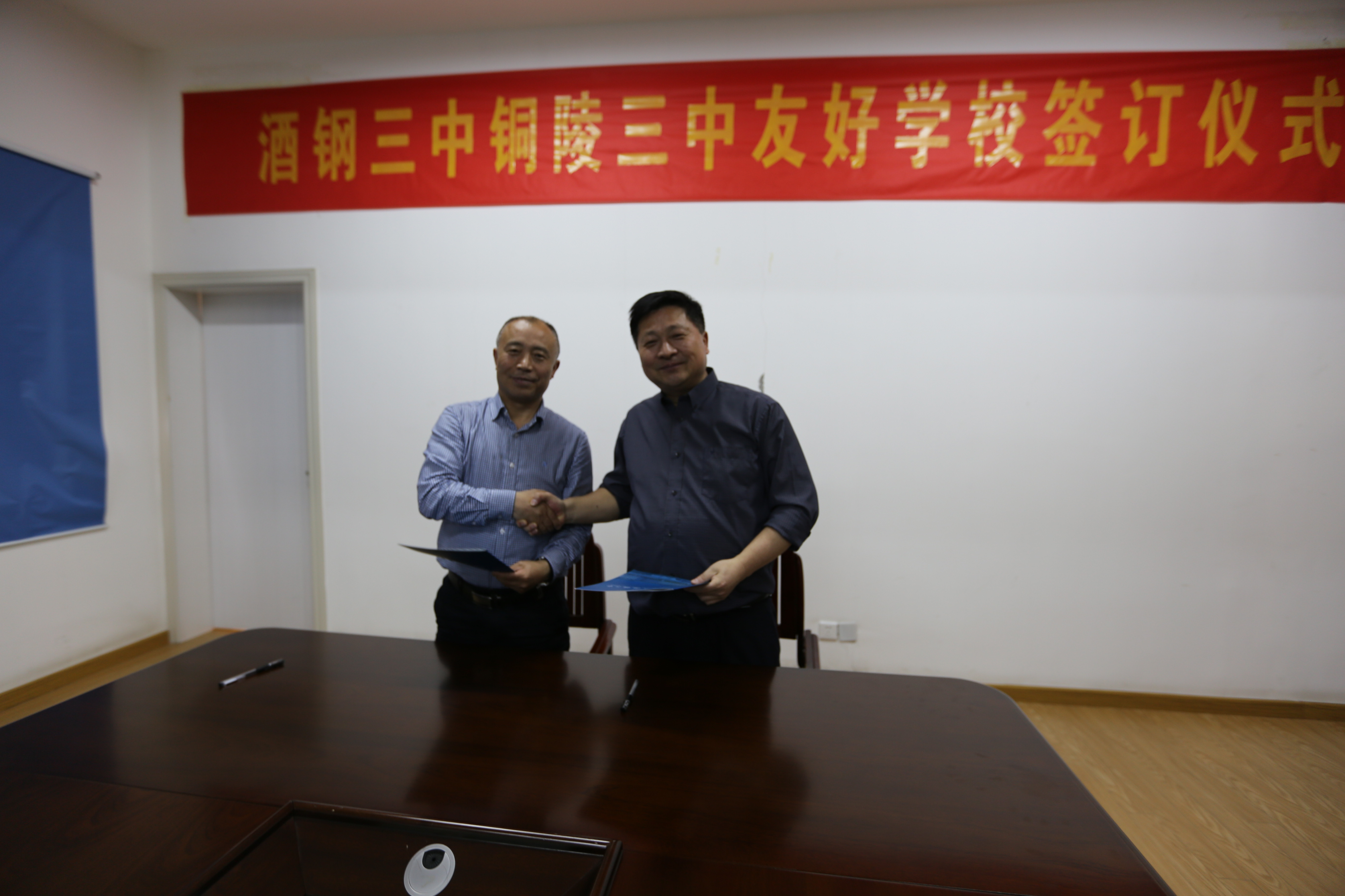 酒钢三中校长卢同朱感谢铜陵三中的热情接待,他对铜陵三中近年来取得的改革发展成绩表示祝贺,对我校务实的工作作风和朴实的育人情怀表示赞叹。卢同朱校长介绍了酒钢三中的发展情况:酒钢三中位于嘉峪关,创建于1978年,原名酒泉钢铁公司第三中学,属酒泉钢铁集团公司企业办学。2007年移交嘉峪关市政府管理,改用现名。酒钢三中建校之初为甘肃省重点中学,1986年在全市率先改制为独立高中,2008年原中核四零四中学高中部并入酒钢三中,办学规模进一步扩大。2015年8月学校从长城东路2号老校区,整体搬迁至南市区观礼北路1599号新校区。