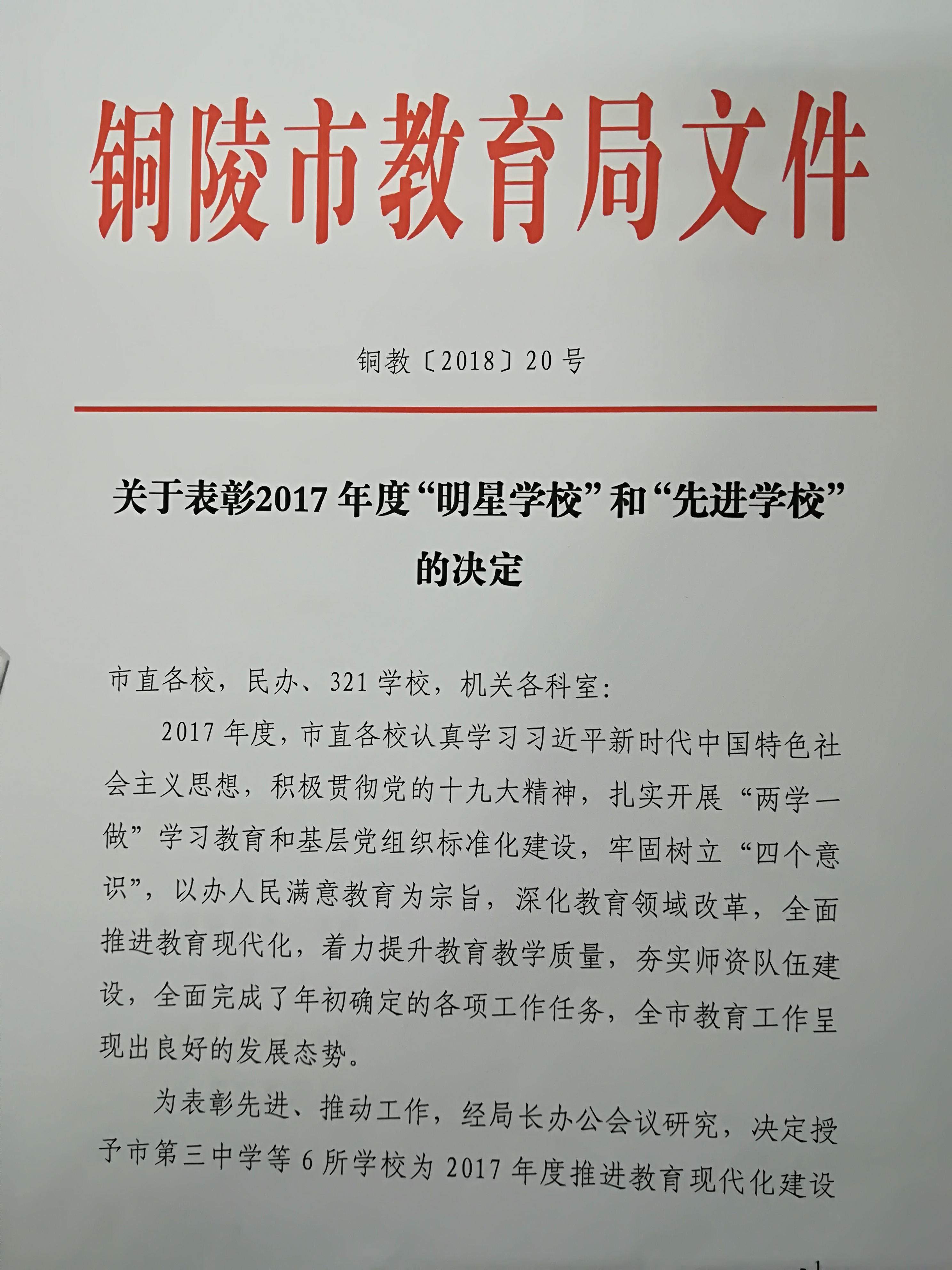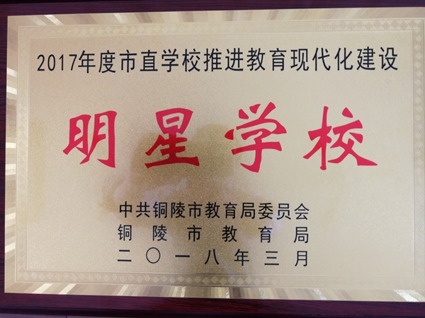3月26日上午,在全市教育工作会议上,我校被授予2017年度推进教育现代化建设“明星学校”称号。