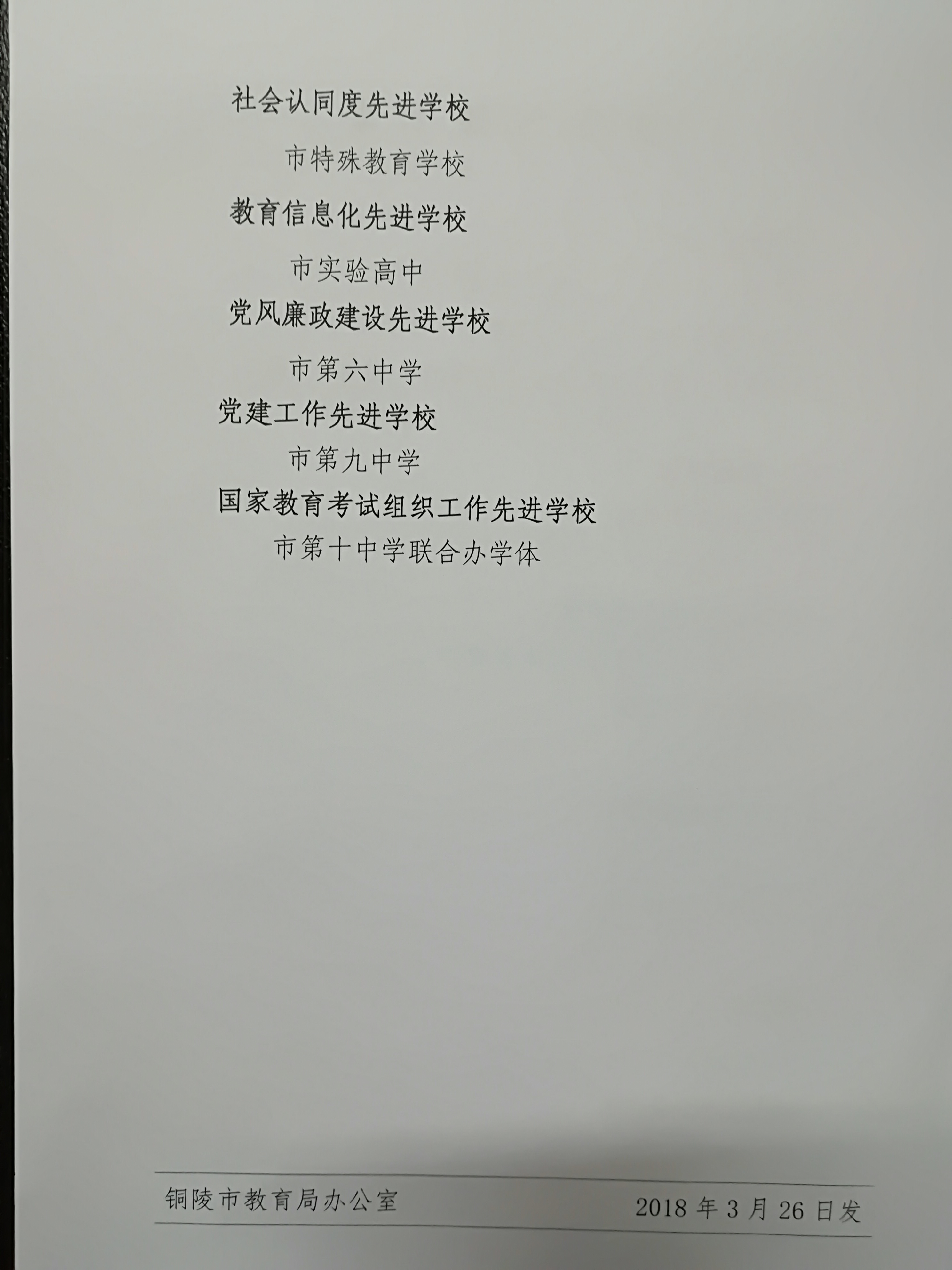据悉,我校是2017年度市直学校考核中唯一一所获此称号的省级示范高中。