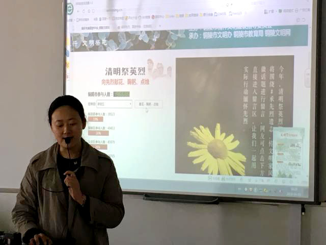 4月9日上午,校政教处组织学生开展“网上祭英烈”活动。同学们通过网上主题活动页面,向先贤先烈鞠躬献花、点烛、签名寄语、表达哀思,追忆方式文明、节俭、环保。参加活动的同学们纷纷表示,要倍加珍惜今天的幸福生活,不断增进爱党爱国情感,为实现复兴“中国梦”而努力学习、成长成材。