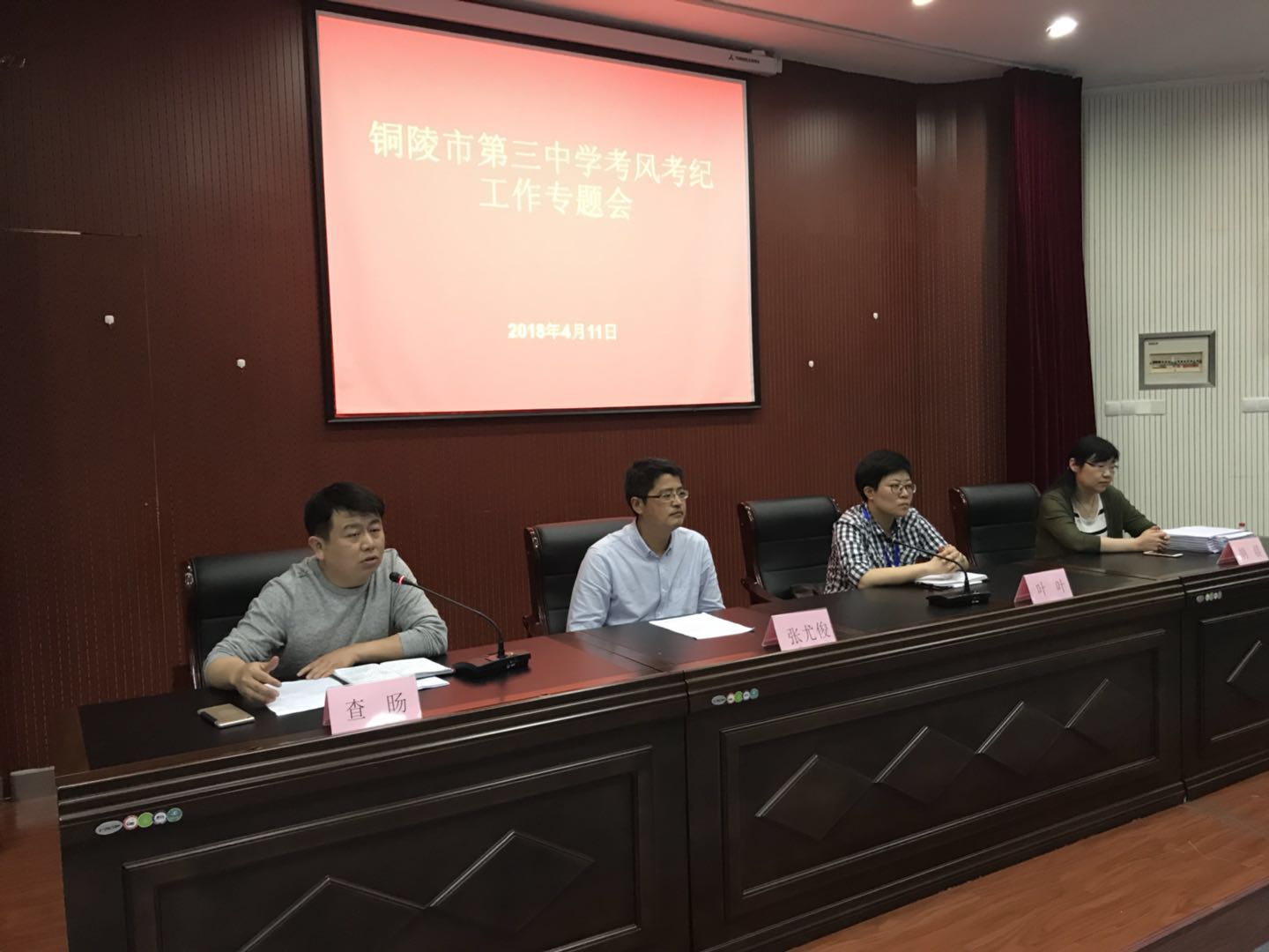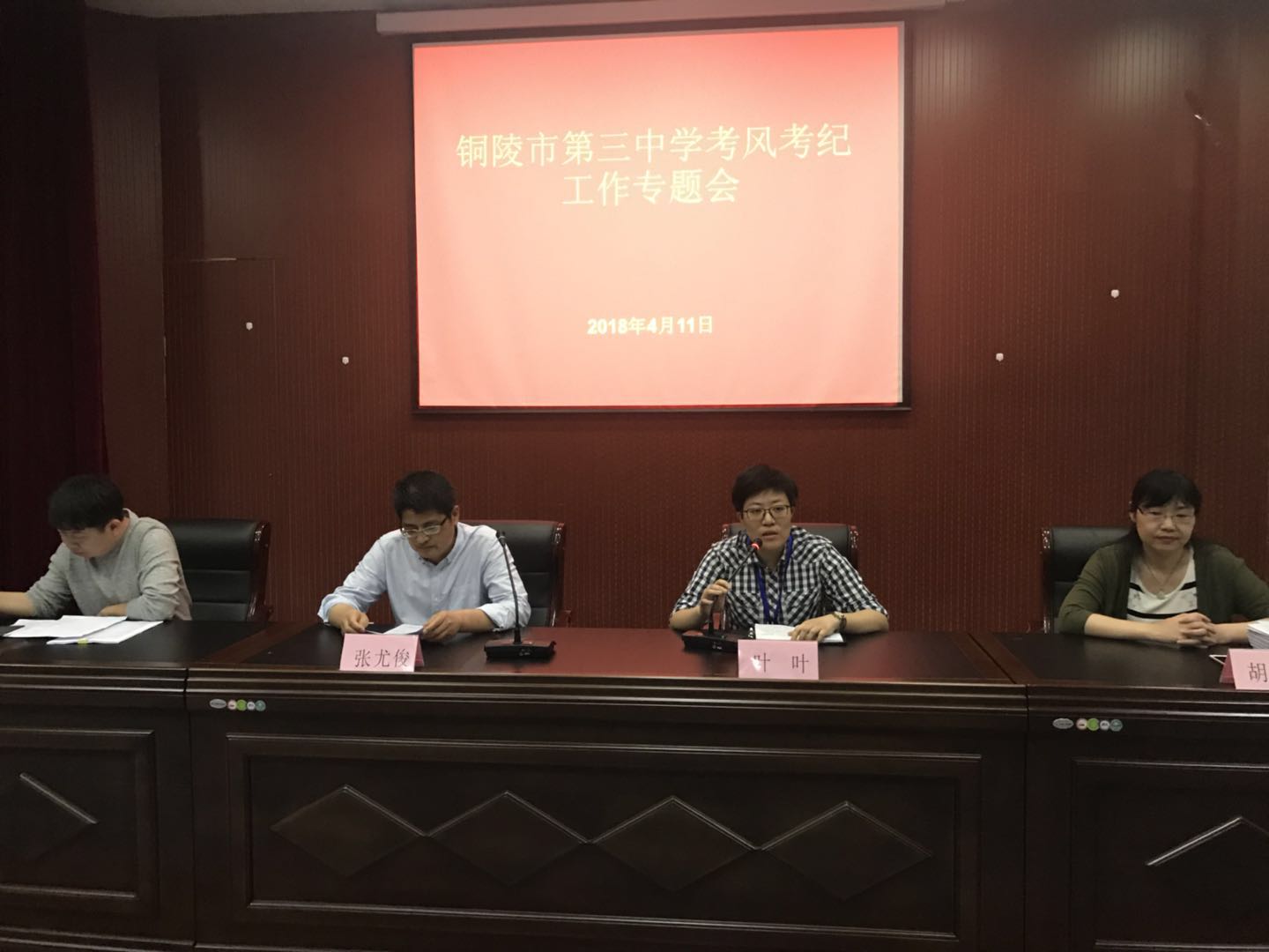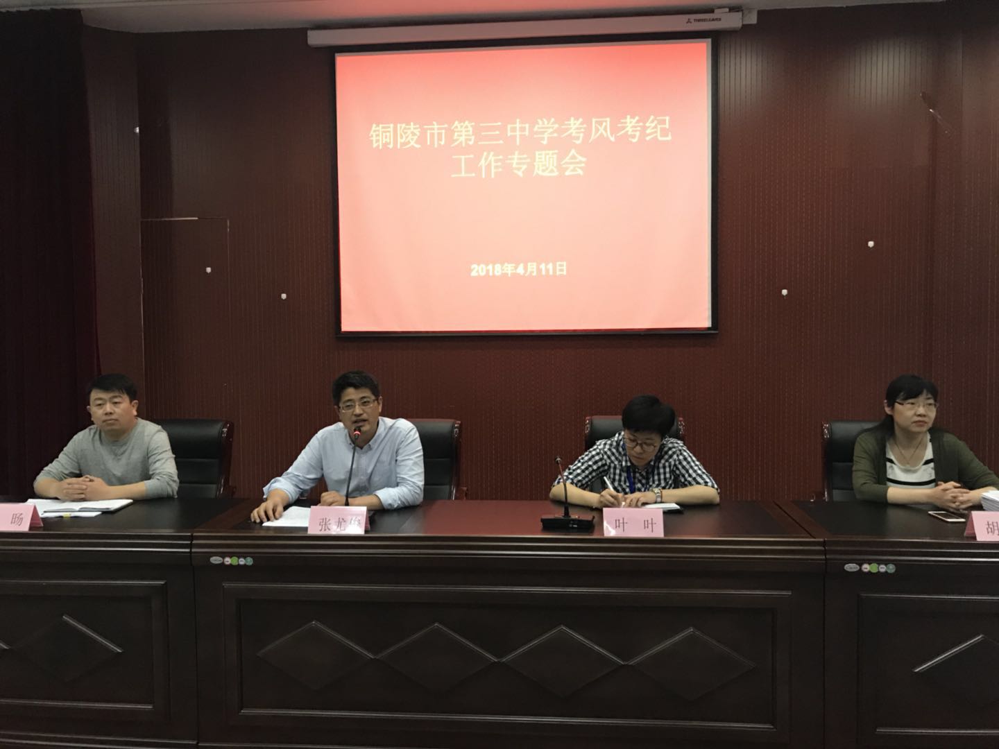为端正考风、严肃考纪。4月11日下午,我校在多功能厅召开“铜陵市第三中学新学期考风考纪工作专题会”。会议由教务处主任张尤俊主持。