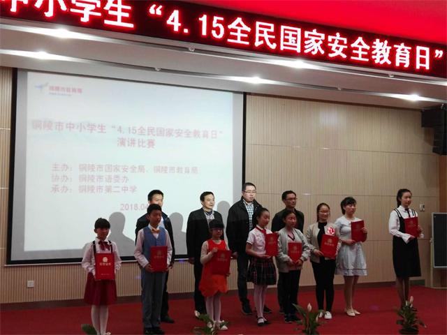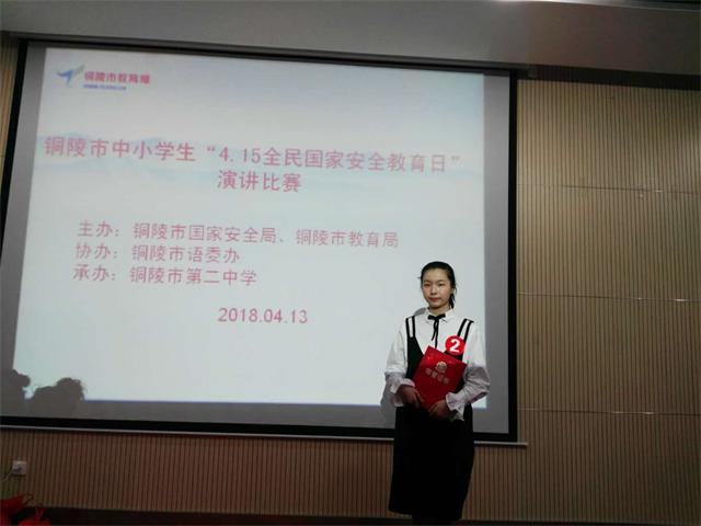 4月13日下午,由铜陵市国家安全局、铜陵市教育局主办的“4.15全民国家安全教育日”演讲比赛在市二中隆重举行。