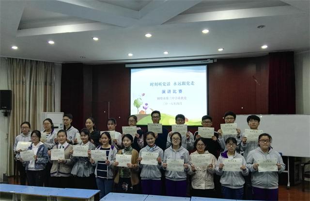 本次比赛为同学们搭建了一个展示自我的平台,拓展了他们的视野,锻炼了思维,激励着他们时刻听党话 ,永远跟党走,为实现中国梦而努力奋斗。经过激烈的场上角逐和评委认真、仔细、公正的评判,最终评选出一、二、三等奖若干名。比赛结束后,政教处领导现场为获奖选手颁发奖状。赛后,参赛选手合影留念,留下了这次活动的美好记忆。