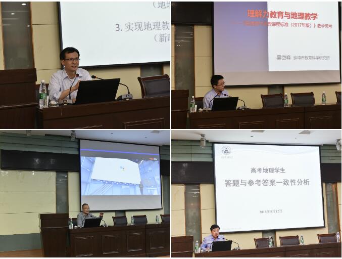 安徽师范大学地理与旅游学院副院长方凤满教授主持下午的学术论坛。中学正高级教师李京燕老师作了“新课标背景下的高中地理教学”的报告,以《交通与区域发展》和《水循环》两则案例,生动阐释了课前调查和地理实验在教学中的重要性,提出了地理实践力素养的具体落实路径。合肥市教育局副局长王勇作了“学科核心素养的承载:单元教学”的报告,指出了单元教学的重要性,提出创造单元设计需要把握三个着力点,并鼓励在座各位代表多进行以“单元教学”为中心的学科教研。合肥一中副校长方小培作了“基于新课程的学校地理教学管理改革与创新”的报告,结合三元闭包理论,同质性理论及合肥一中智慧学院发展案例首次论证了文化引领、课程开发、品牌塑造、主题教研四大方向在新课程改革背景下对学校地理教学管理的作用。蚌埠市地理教研员吴岱峰老师作了“理解力教育与地理教学——《普通高中地理课程标准(2017年版)》教学思考”的报告,阐释了问题教学,深度教学与学科本质的关系,进一步提出理解力教育对学生理解知识的重要作用。吴儒敏老师做了“指向核心素养的教学关键在情境”的报告,从《学习算法入门》这本书的心得体会出发,通过“天眼”、稻城的两张光照图片等详实生动的案例论证了情境创设在高中地理教学中的具体做法和重要性。安徽师范大学地理与旅游学院李俊峰老师作了“高考地理学生答题与答案一致性分析”的报告,分析了学生答题与标准答案有较大出入的原因及表现,并结合学生答题情况,提出了参考建议。