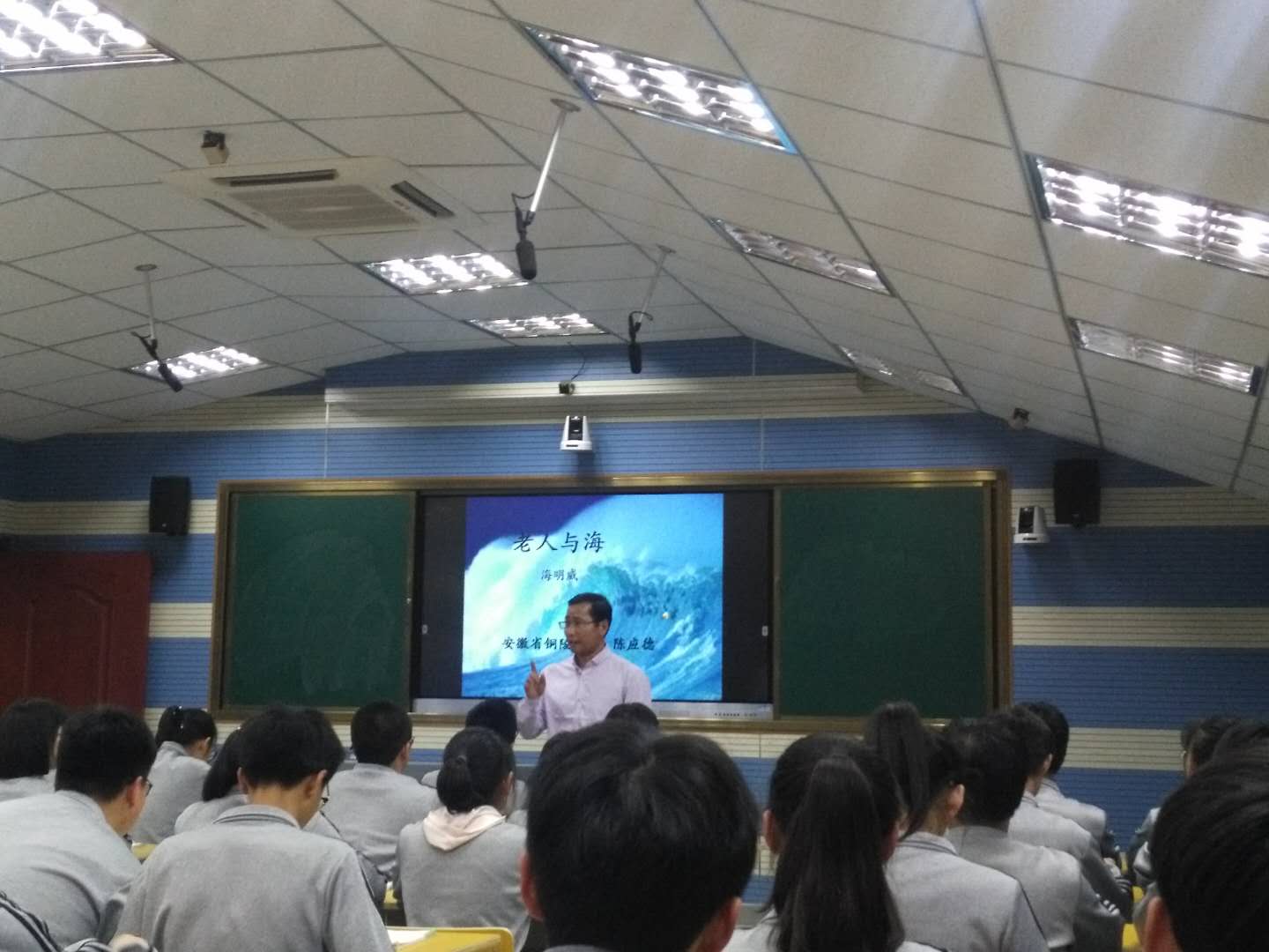 第二节课由铜陵三中著名教师陈应德老师执掌,陈老师则另辟蹊径,以“真实”二字为中心,带领同学们从小说的场景、情节和心理等方面领略了《老人与海》的“真实”!最后凭借着饱满的激情、幽默的语言、巧妙的构思、精巧的设计、优秀的素质和良好的效果为在场的所有老师展现了一堂精彩绝伦的高中语文课,赢得了在场教师的一致好评!