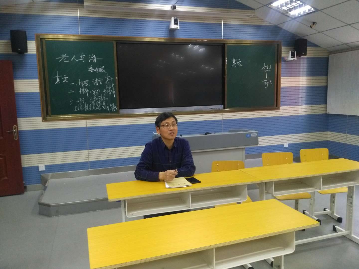 第一节课由铜陵中学优秀教师史鸿铭老师为我们展现,史老师以学生们崇拜的英雄引出本文,以老人的五次捕鲨为线索带领学生们了解全文主要情节,展开对老人如此行为的探讨。以浅显易懂的语言为我们展现了老人的精神,并且延伸到我们每一个学生的身上。最后还留下来一个别开生面的课后作业:为海明威的《老人与海》写一段颁奖词。