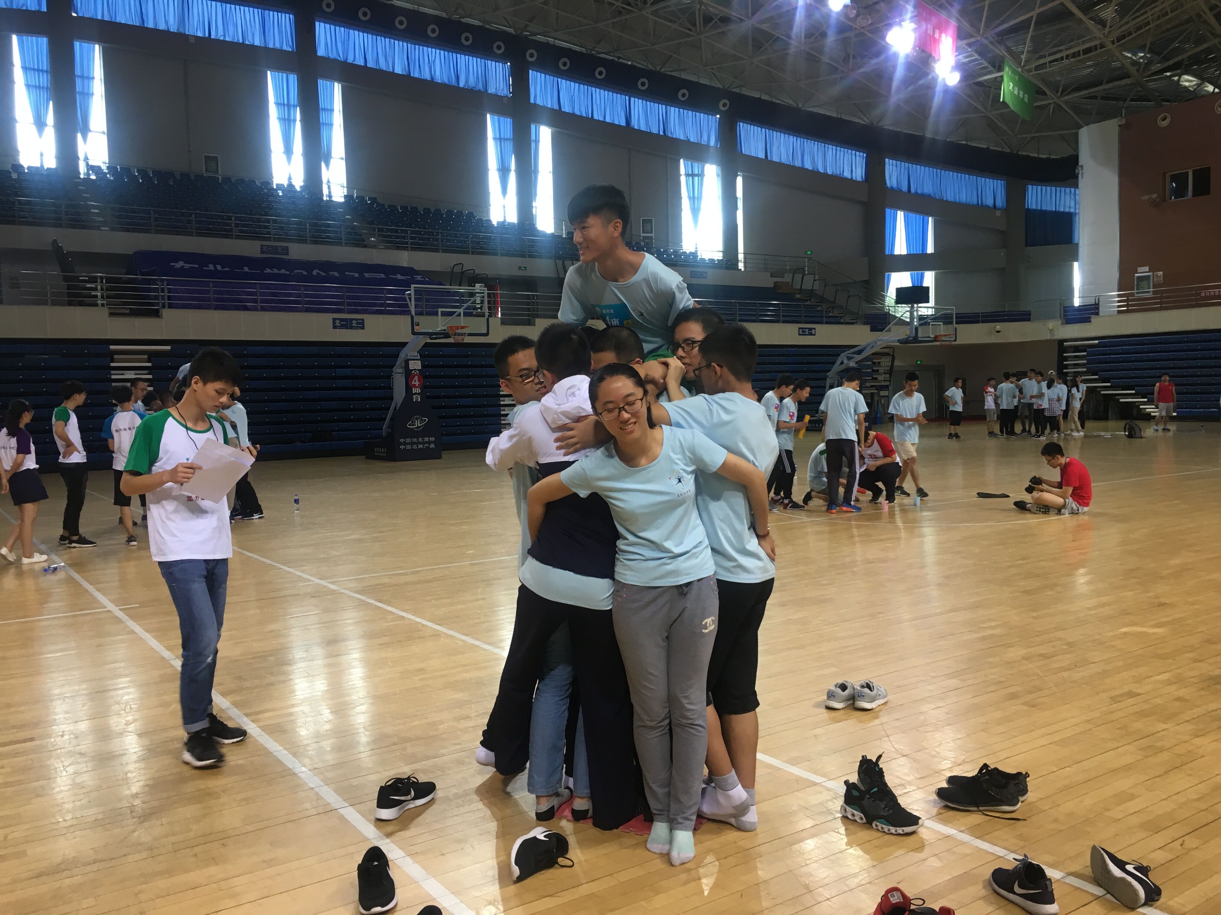科学营的第五天举行了挑战吉尼斯素质拓展活动,这个活动要求所有团队在了解项目规则的前提下,商讨并制定切实可行的实施方案,完成十个项目的挑战,总用时最短队伍获胜。虽然最后铜陵三中团队并没有取得很好的名次,但是通过这些活动的比拼,加深了营员们之间的默契程度,培养了大家的沟通能力与决策能力,加强了团队意识同时也收获了身心的快乐。