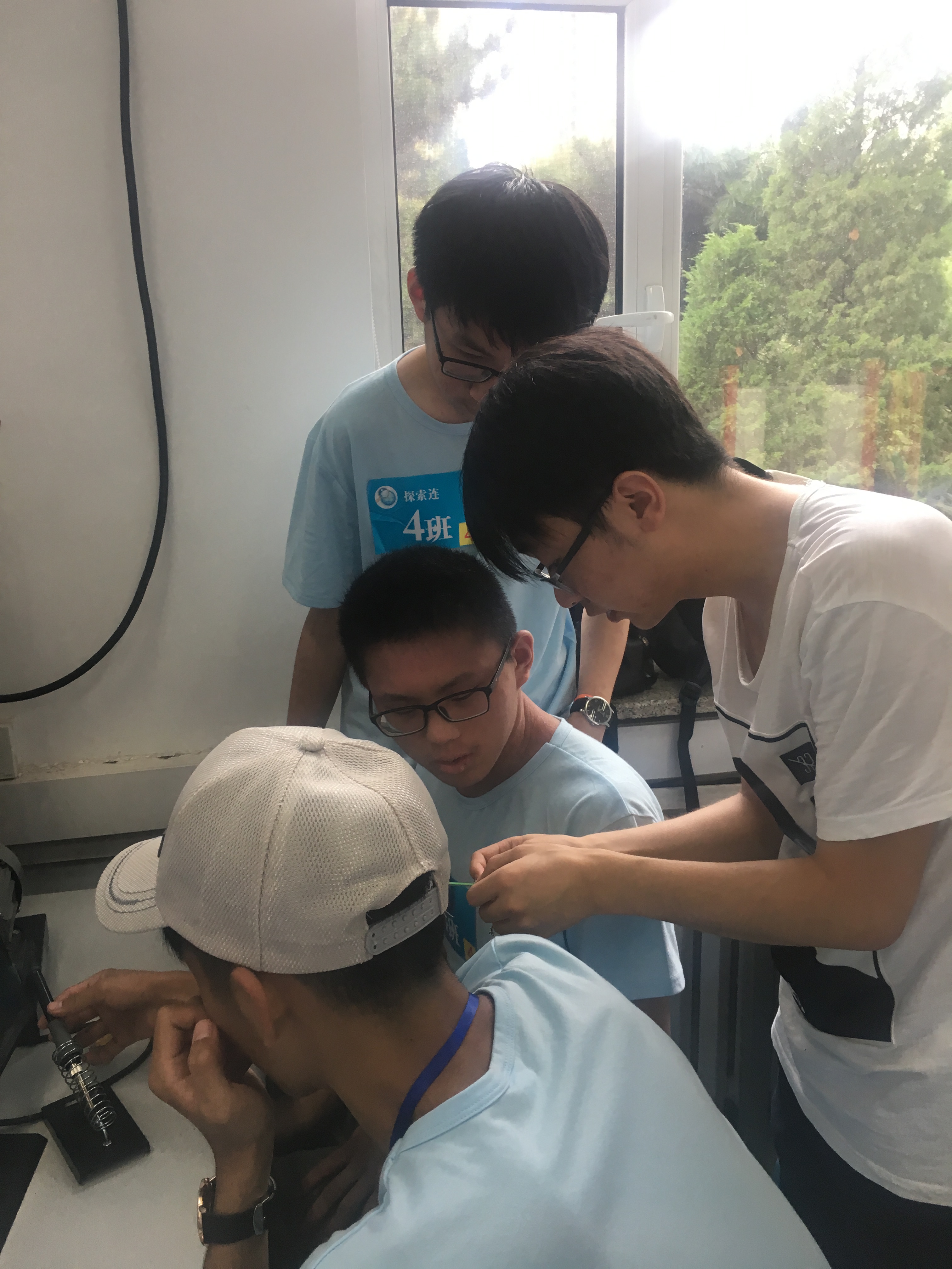 在这次科学营的物理实验的操作和小组合作中,同学们三人或四人一组,自行焊接完成流水灯的设计和控制,最后由学长对各小组进行打分评比。通过这次创新创意科普比赛活动,参赛的同学们能够对联动装置的原理以及电子专业相关知识有所了解,并且对创新创意、合作实践的热情及能力得以提升,鼓舞着孩子们更加积极的在创新中丰富自己,提高了动手实践能力、团队合作能力,渲染积极创新的学习氛围,让他们有更多锻炼自己、展示自己的机会。