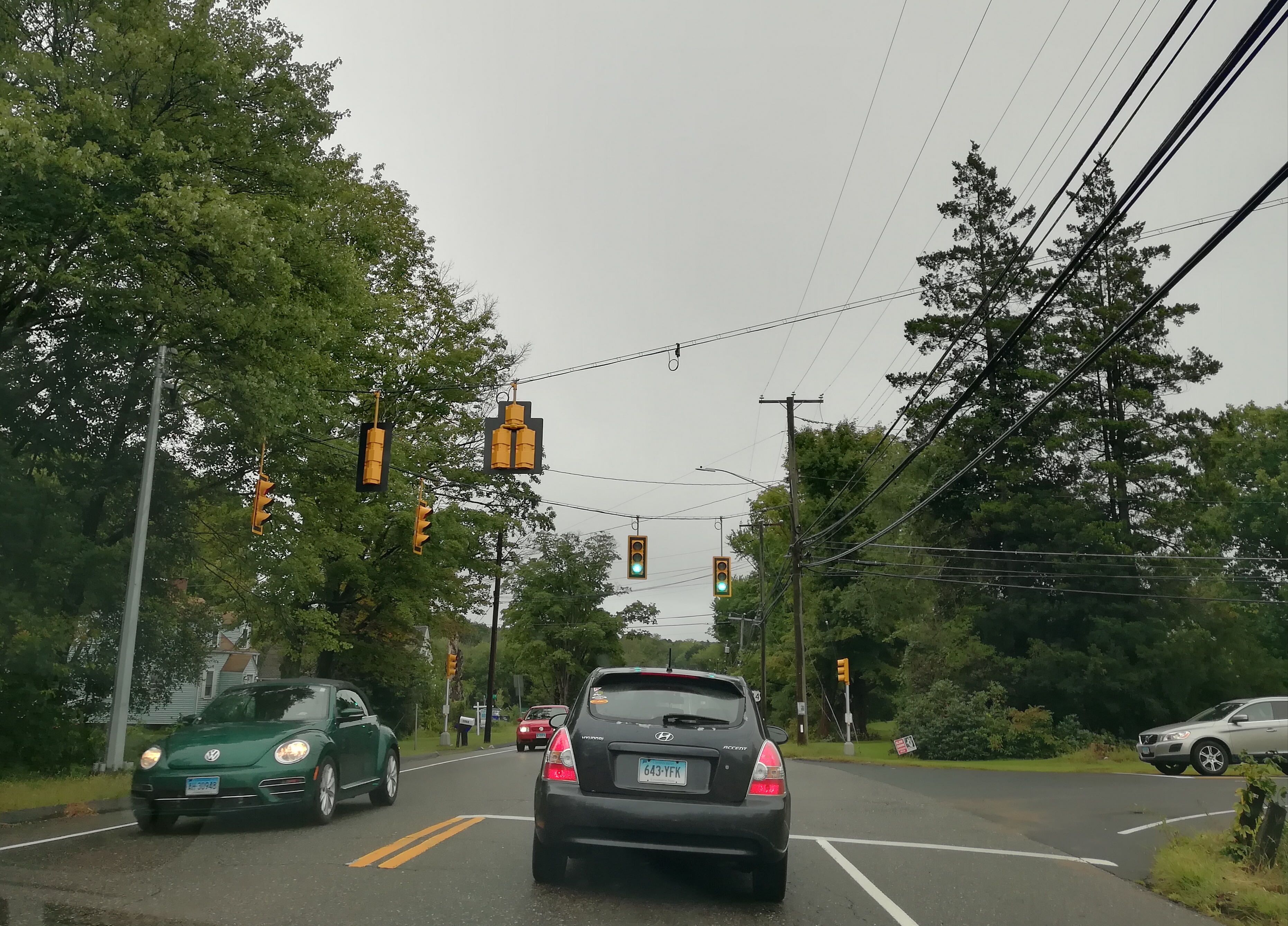 对美国的另外一个比较颠覆的认知就是,到处是跟国内一样的电线杆和杂乱无章的电线。难以想象如此发达的一个国家居然电线满天飞,而不是埋到地下。尤其是红绿灯,甚至都没有安在路边的竿子上,而是被几根绳子拉着吊在路中间。英国是不会存在这种情况的。英国的道路两旁是修剪的整整齐齐的一人多高的篱笆,车子行在路上有如穿越迷宫,神秘浪漫。反观这里,路边杂草丛生,各种植物按照各自的意愿肆意生长,从来没人干涉的样子。路边随处可见不知已经存活了多少年的参天大树,我所在的地区就像一个巨大的原始森林。这也从一个侧面体现出两个国家不同的国民性格,美国人的自由奔放,英国人的优雅含蓄。这种差异还体现在房子上。英国人的房子都会带一个后院,面朝马路的一方必然会在窗台摆上一束漂亮的鲜花。前院是修剪得漂亮整齐的绿植,后院才是和朋友家人一起休闲娱乐的地方,不为外人看也。在美国,房子的周围一大片都是私人的,一般不会有栅栏或围墙隔着,大树是他们的天然围栏。他们没有后院,房子四周都是他的。一般门房旁边正对着大路会放两把椅子一张小茶几,喝酒聊天,墙上挂着一面美国国旗。