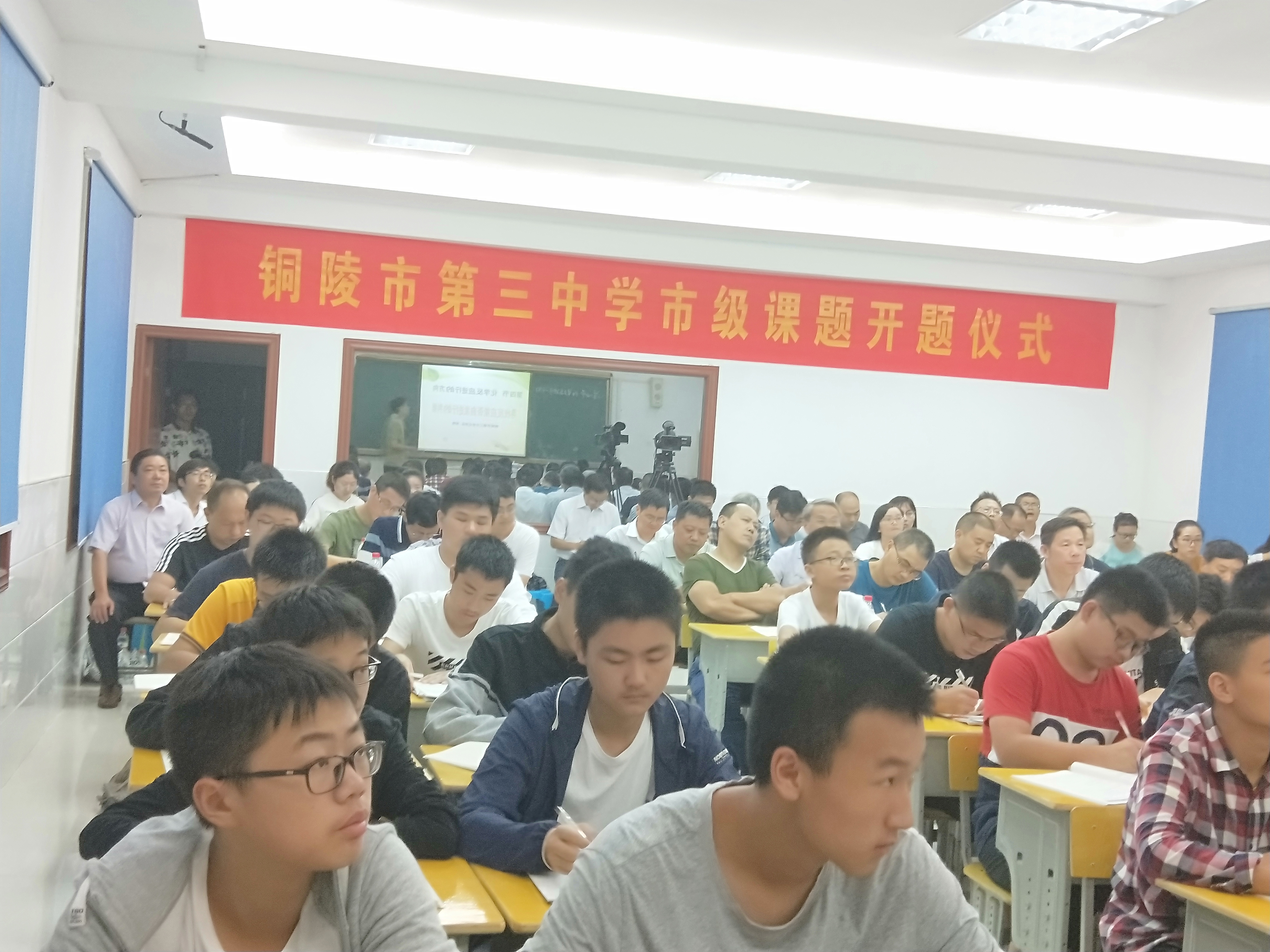 为提高高中化学课堂教学的有效性,交流、研讨新课程标准化学学科核心素养教育,提升高中化学教师教学水平,拓展和丰富中心备课组活动内容。9月21日上午,铜陵市高中化学中心备课组活动在我校开展。参加本次活动的有市教科所化学教研员胡孔国老师以及来自全市近50位化学教师。