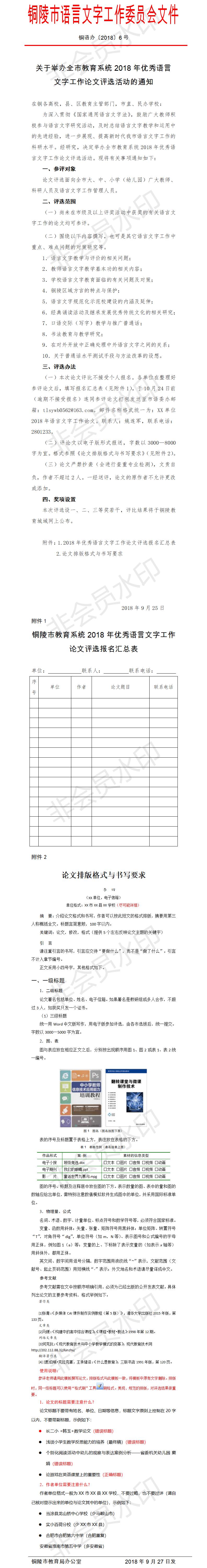 关于举办全市教育系统2018年优秀语言文字工作论文评选活动的通知