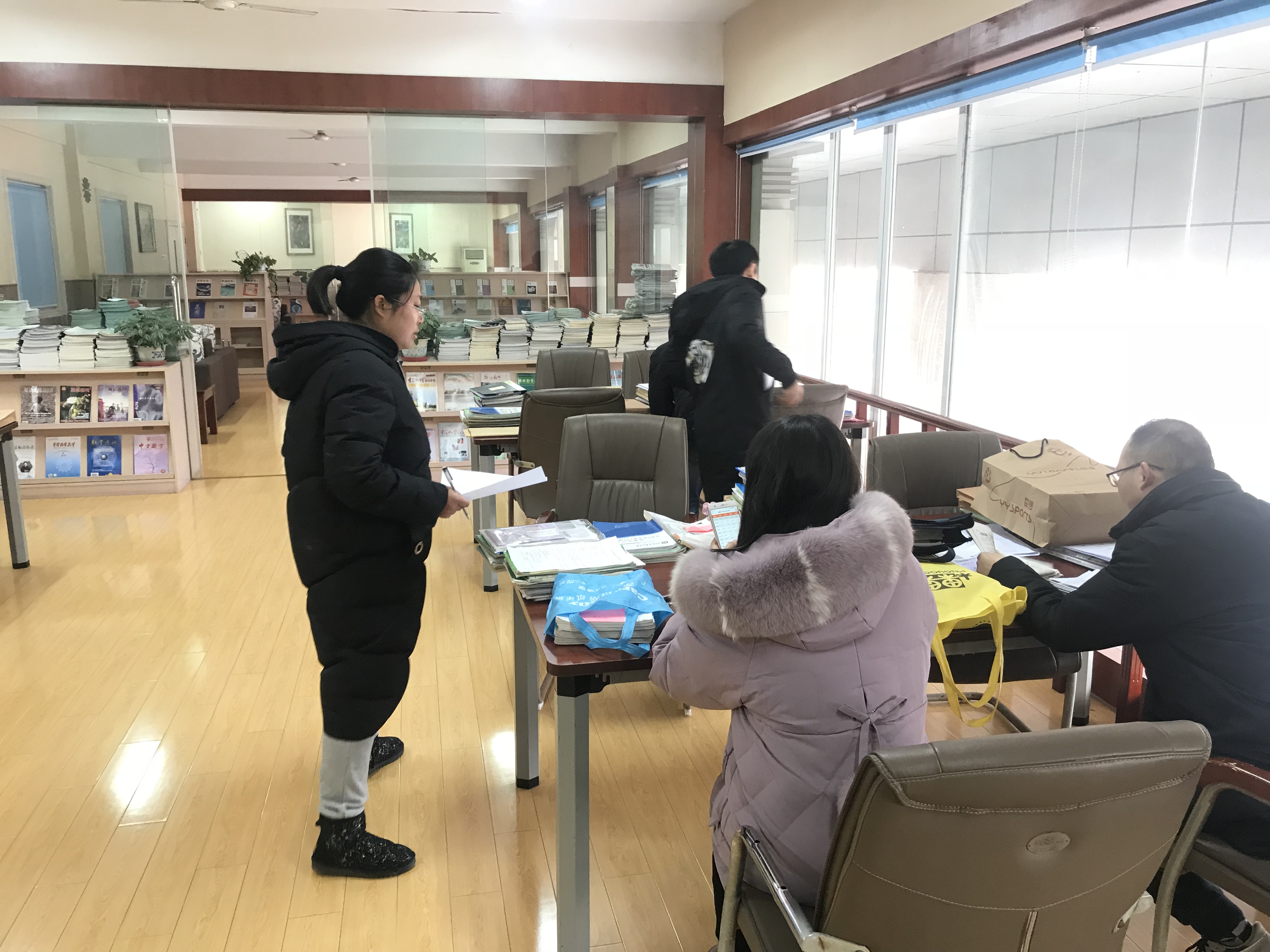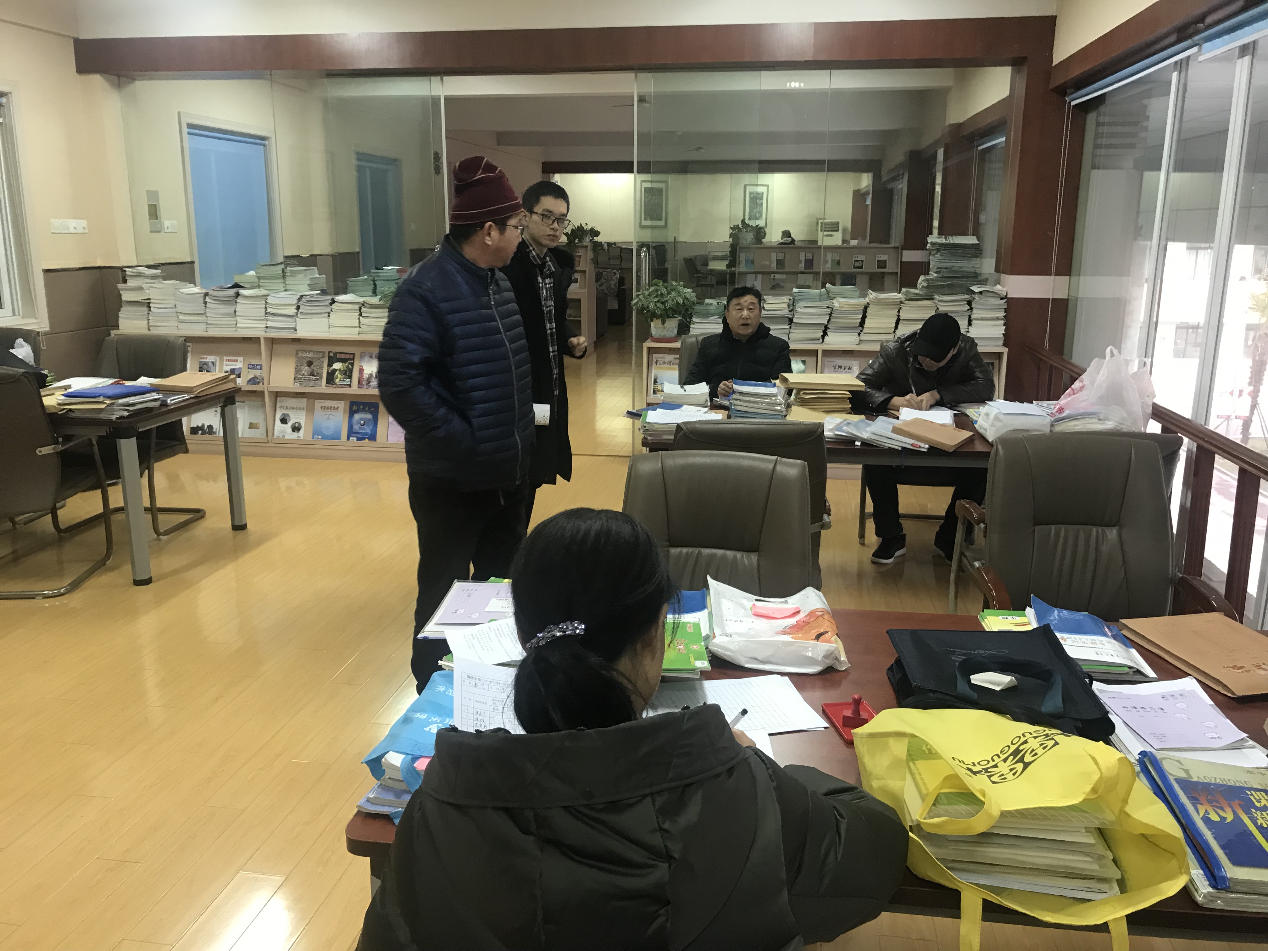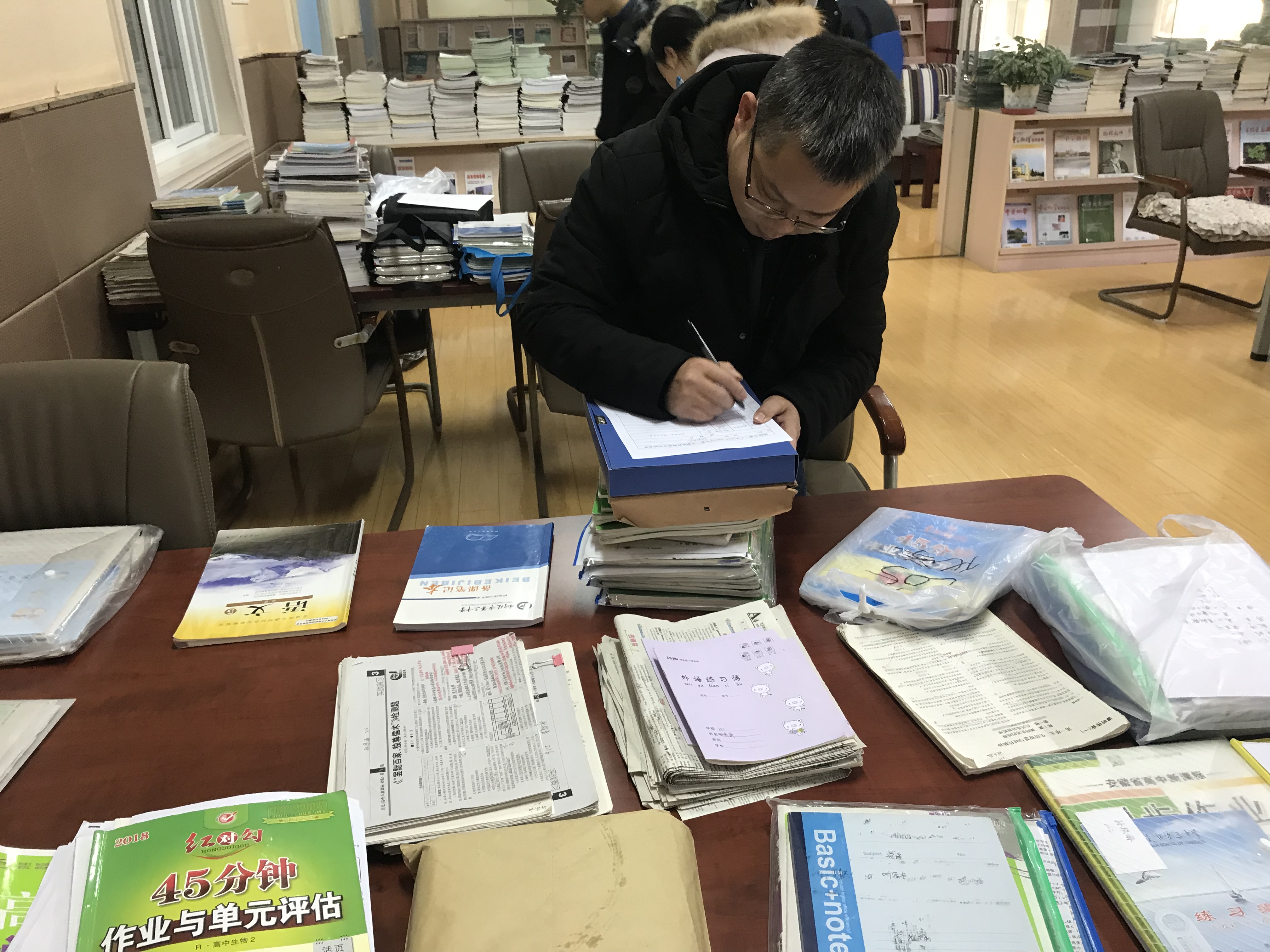 此项工作主要针对全校教师的作业批改及40岁以下青年的教案备课情况进行了集中检查,由年级部具体负责实施,得到了各年级备课组的大力支持。12月28日下午,在校图书馆阅览室,各备课组长认真审阅了本组青年教师的备课笔记和作业批改情况。检查过程中,备课组长对本组老师进行了认真细致的点评,并给出了具体可行的改进建议作为回馈,对部分老师的优秀教案给予了赞赏和肯定。校教务处主任张尤俊、副主任江选安深入检查一线,重点关注检查中涌现的先进案例,特别是青年教师的教学成长情况。在作业检查中,各备课组长注重衡量全校老师作业布置的科学性、探究性,清点了作业批改的次数,考察批改点评对学生的发展性影响等等。