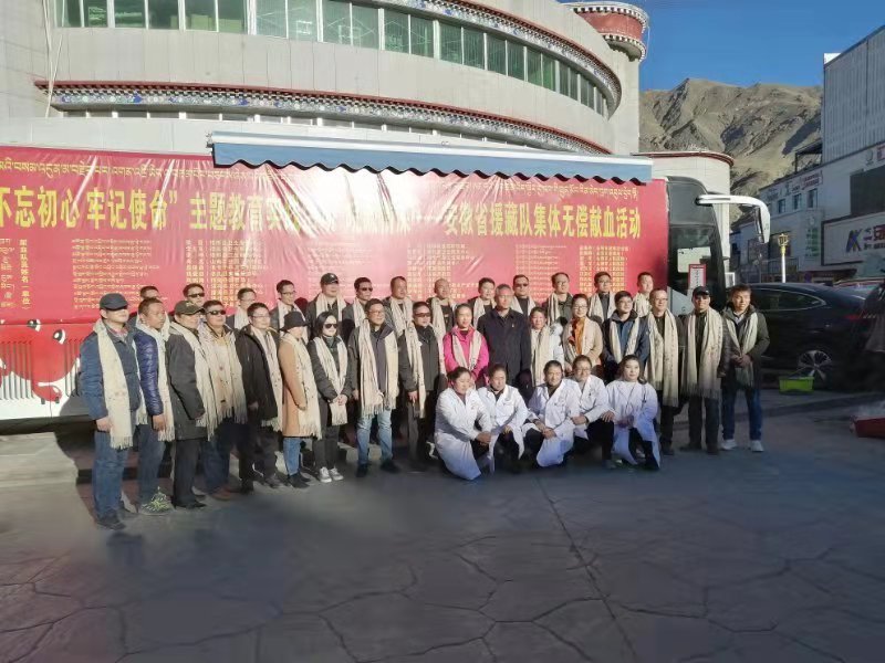 11月27日,在深入开展第二批“不忘初心,牢记使命”的主题教育中,安徽省第七批援藏工作队队员们自愿报名参加西藏山南市无偿献血志愿服务活动,在雪域高原寒冷缺氧的冬季,用滚烫的热血,传递这安徽援藏人的温度和奉献。经过登记体检等一系列严格的筛查程序后,来自卫生,教育,农业,环保,审计等近10多个行业的21名援藏队员成功献血5200ml,这是近年来西藏山南市规模最大的一次无偿献血活动,也缓解了山南市血站血库中B型血短缺的情况。