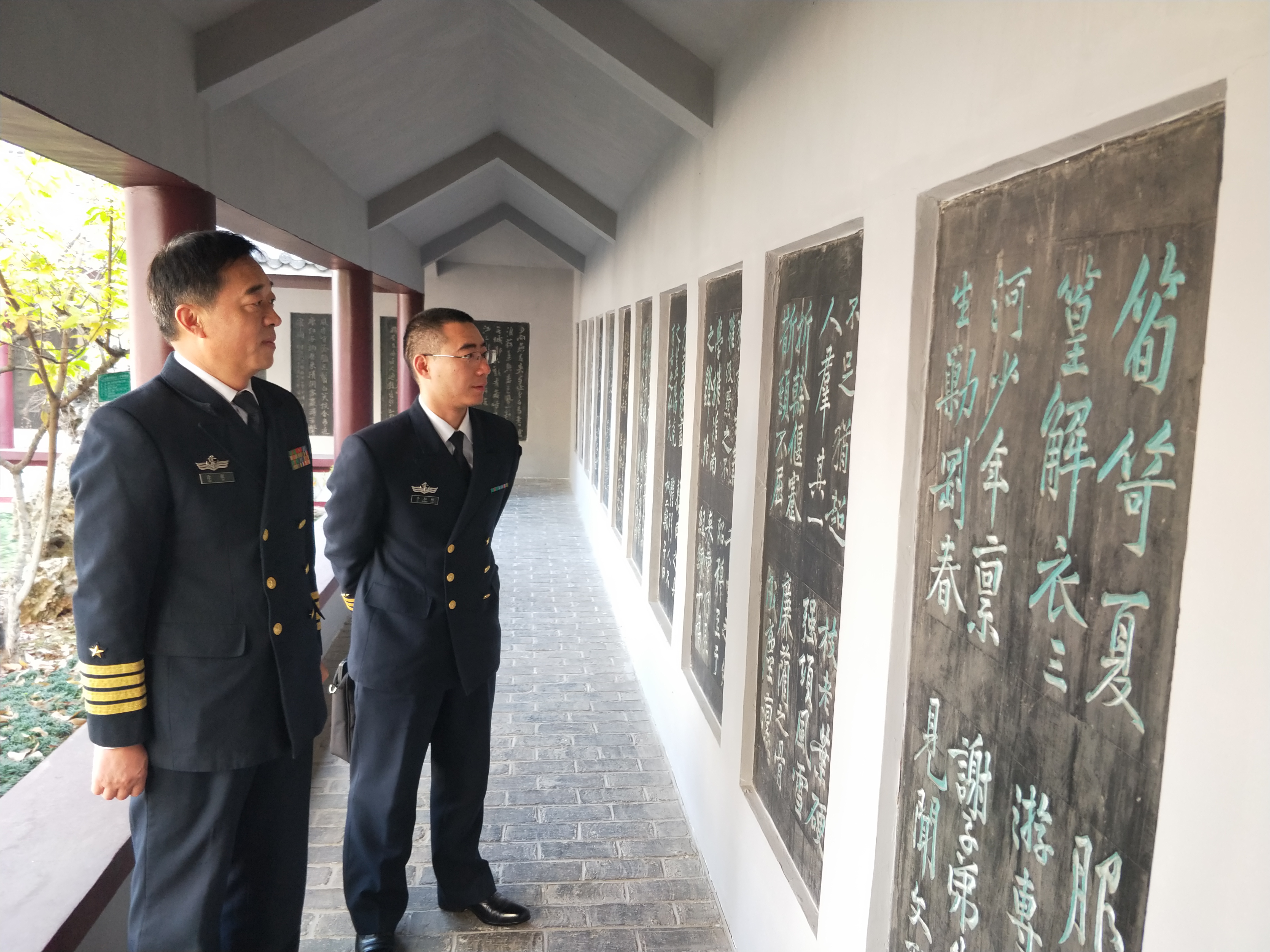 会前,在外联科科长梁波的带领下,徐毅上校一行还参观了我校植物园和五松山文化碑廊。