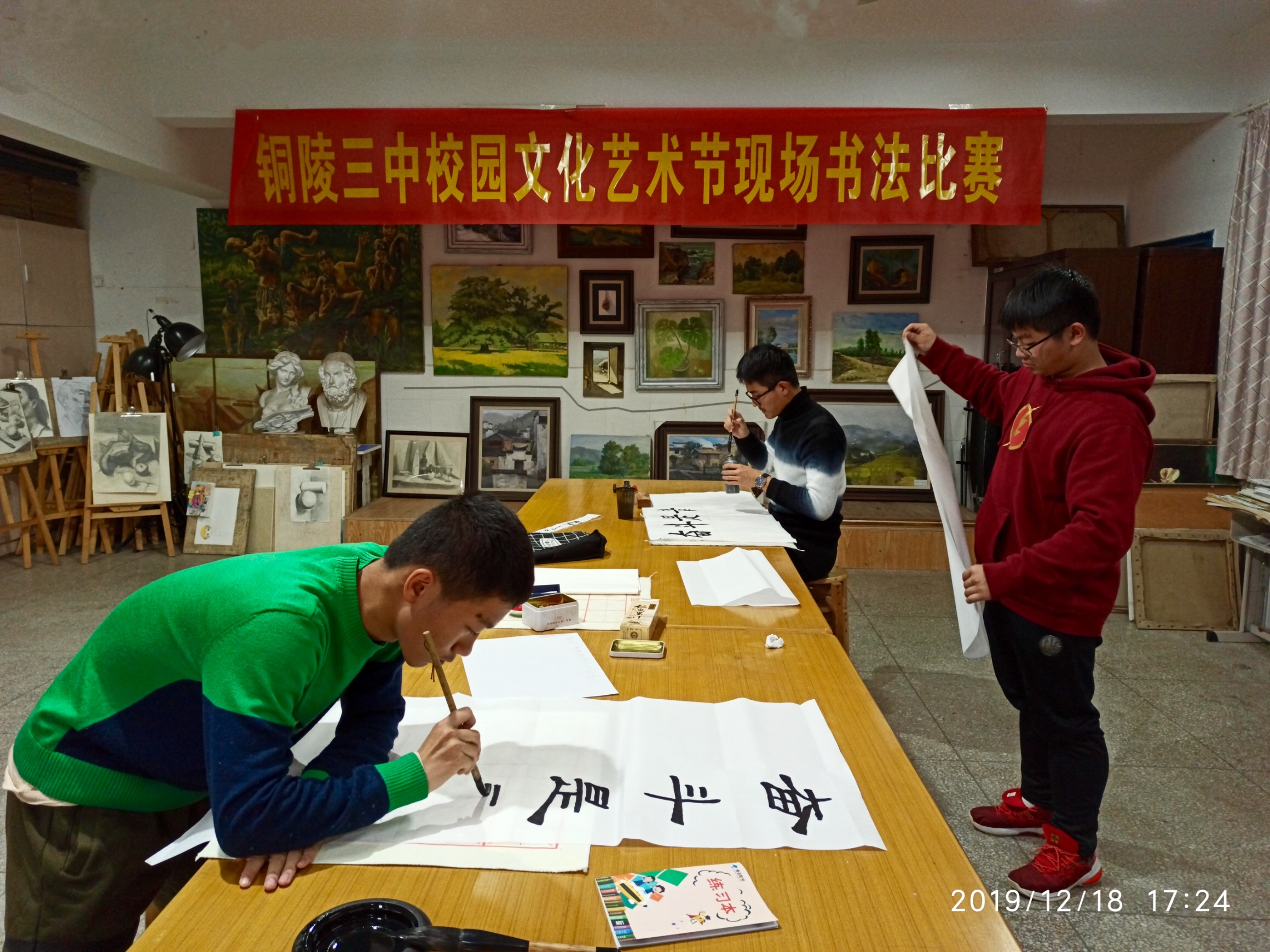 12月18日下午,三中校园文韵流淌,翰墨飘香,我校第27届校园文化艺术节现场书法大赛盛大开场,69位书法爱好者现场泼墨挥毫。此次大赛不仅是一次莘莘学子书法风采的展示,也是我校注重学生“非智力因素”教育成果的呈现。