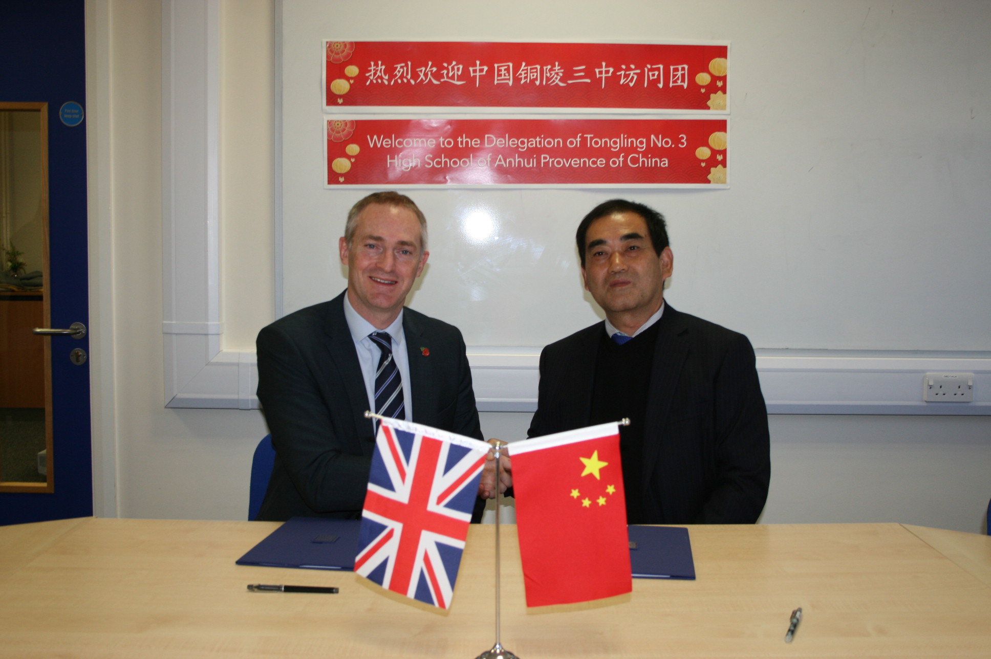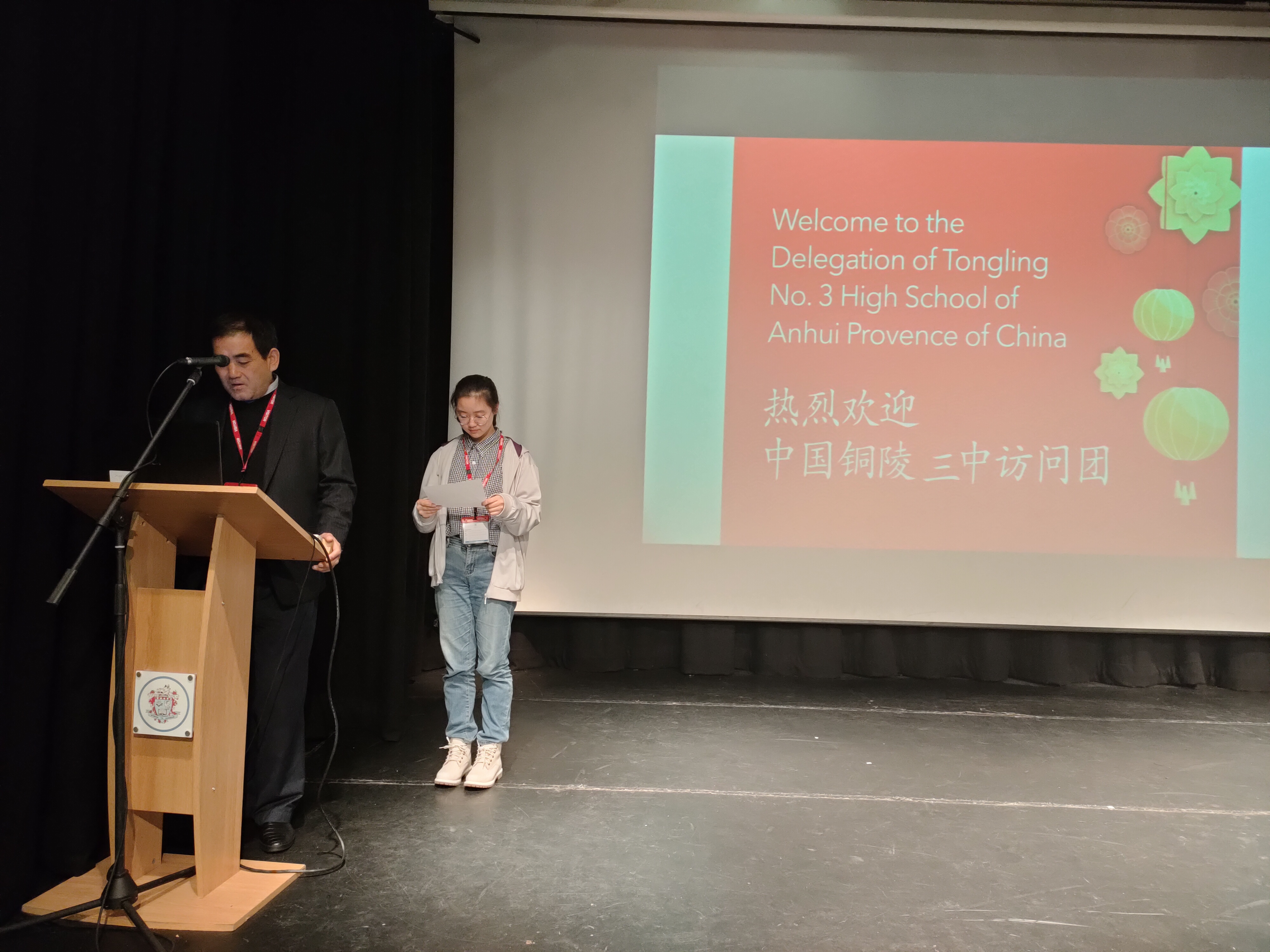经圣查德中学推荐,英国曼彻斯特市史温顿中学也主动联系我校,希望建立友好学校,开展校际交流。铜陵三中教育代表团与11月16日下午乘坐大巴车前往曼彻斯特,参加史温顿中学的欢迎仪式,欢迎仪式上我校师生做一次以铜陵城市历史发展、教育文化为主题的演讲,同学们也在典礼上充分展示了中国当代中学生的风采。史温顿中学的学生用热情奔放的现代舞欢迎我们的到来。欢迎仪式后,我们与史温顿中学校方管理层代表会谈。11月17日上午在史温顿中学,代表团师生随堂旁听了中文、物理等课程,下午前往史温顿中学体育馆和足球训练基地,观看学生的足球友谊赛,与体育老师会谈,商讨定期开展校际友谊足球赛和英方足球教练的引进计划。11月18日上午,参加史温顿学校项目周活动,与负责人会谈,了解英国学生社团的开展情况,并商谈签订友好学校备忘录。下午到老特拉福德足球场参观,了解英国足球的历史。11月19日下午乘飞机回国。
