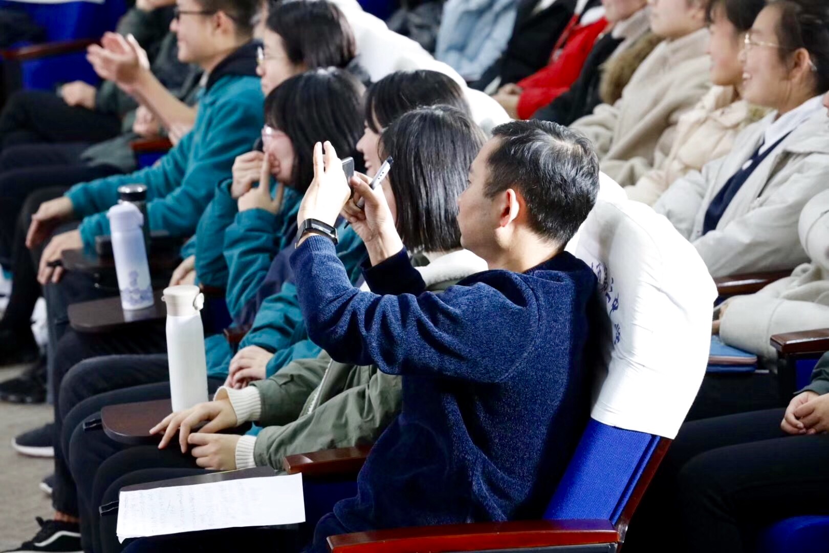 高一年级部长査旸向戏曲专家们表达了诚挚的感谢。学生们对戏曲文化求知若渴,座无虚席,表现出良好的观演素养,欣赏到喜庆非凡的戏曲《闹花灯》、激情四射的相声《比学问》和神仙下凡的《天女散花》。其中,经典黄梅戏《天仙配》以其唱腔优美、故事感人而久看不厌,久演不衰。一首《路遇》惊艳全场,深深打动在场师生,美貌的七仙女不惧天规律条,私自下凡,爱上了贫穷但忠厚老实的董永,这真是在天愿作比翼鸟,只羡鸳鸯不羡仙。