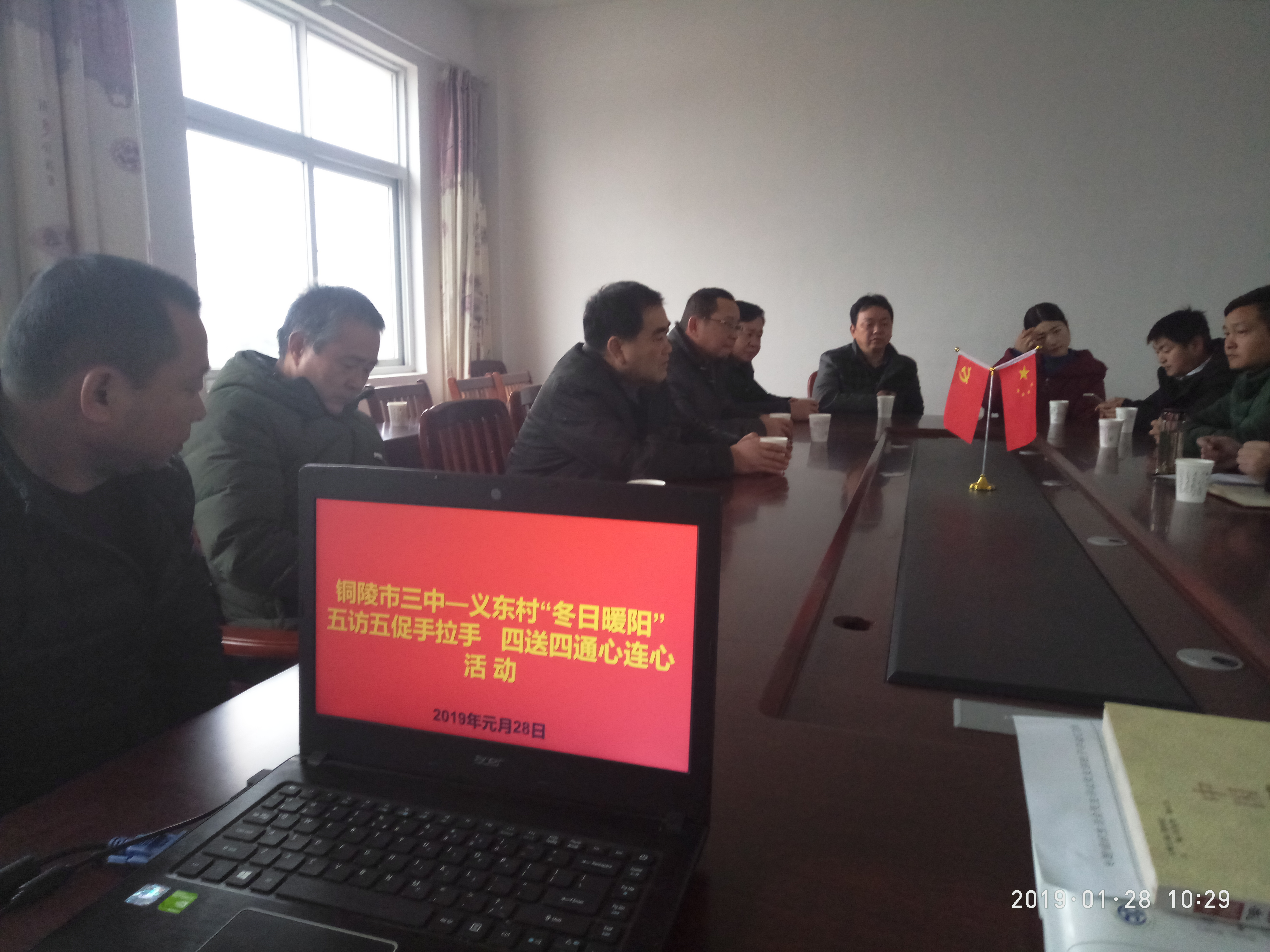 在义东村村部,副校长张国荣组织召开了联合党委会议,学校领导和村两委一起回顾去年扶贫工作,共同学习《习近平总书记关于扶贫工作重要论述》,积极谋划2019年帮扶项目。校领导强调,脱贫攻坚工作是一项政治任务,学校高度重视此项工作,帮扶老师走访入户要积极宣传党的扶贫政策,激发贫困群众的内生动力。并表示:在新的一年里学校将一如既往的协调各方资源,保障人力和物力支持,与村两委、驻村工作队共同努力,助力脱贫攻坚。