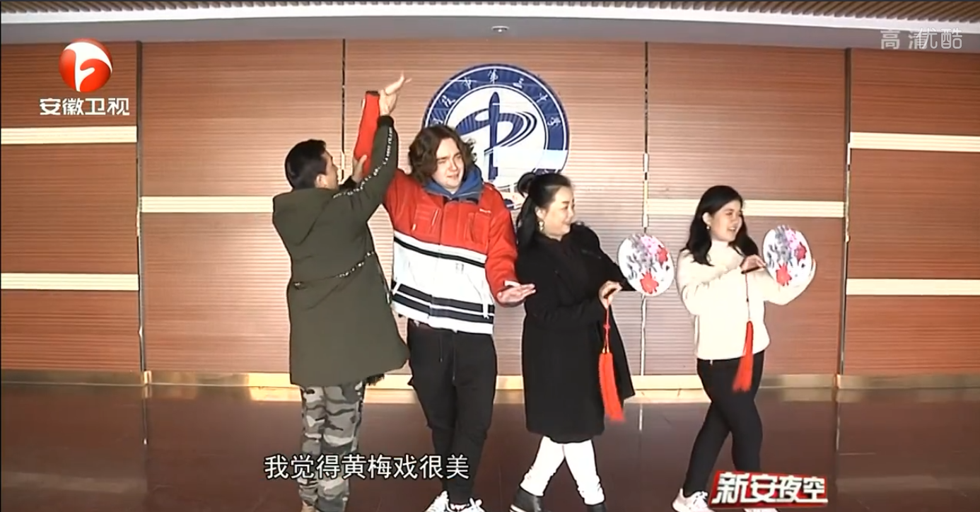 来自挪威的威廉姆森和印尼的西红宾两位AFS留学生正在铜陵三中进行为期一年的文化交流和学习。最近,他们都喜欢上了黄梅戏。春节期间,他们拜铜陵艺术剧院演员为师,有板有眼的学起了黄梅戏的经典唱段《夫妻双双把家还》,安徽卫视还对他们学习黄梅戏进行了专题报道。