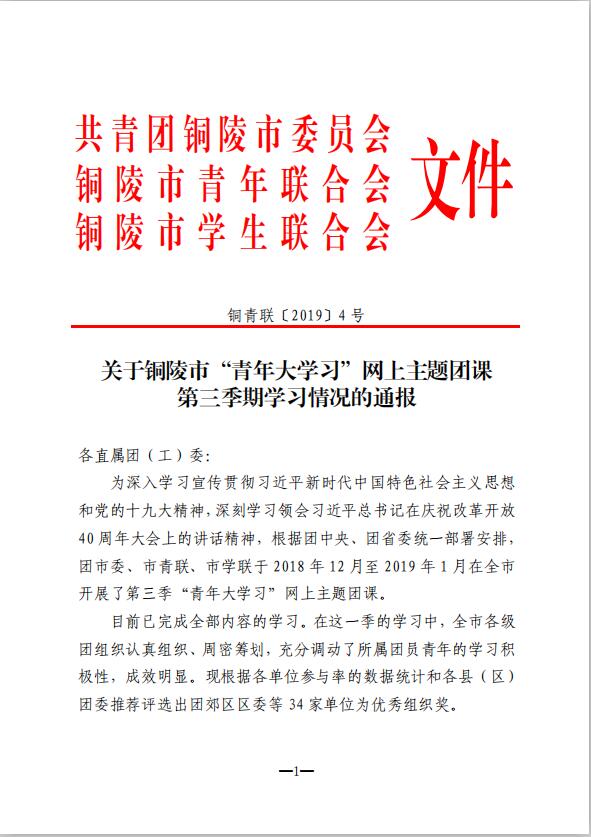 为深入学习宣传贯彻习近平新时代中国特色社会主义思想和党的十九大精神,深刻学习领会习近平总书记在庆祝改革开放40周年大会上的讲话精神,根据团中央、团省委统一部署安排,团市委、市青联、市学联于 2018 年 12 月至 2019 年1月在全市开展了第三季“青年大学习”网上主题团课学习活动。