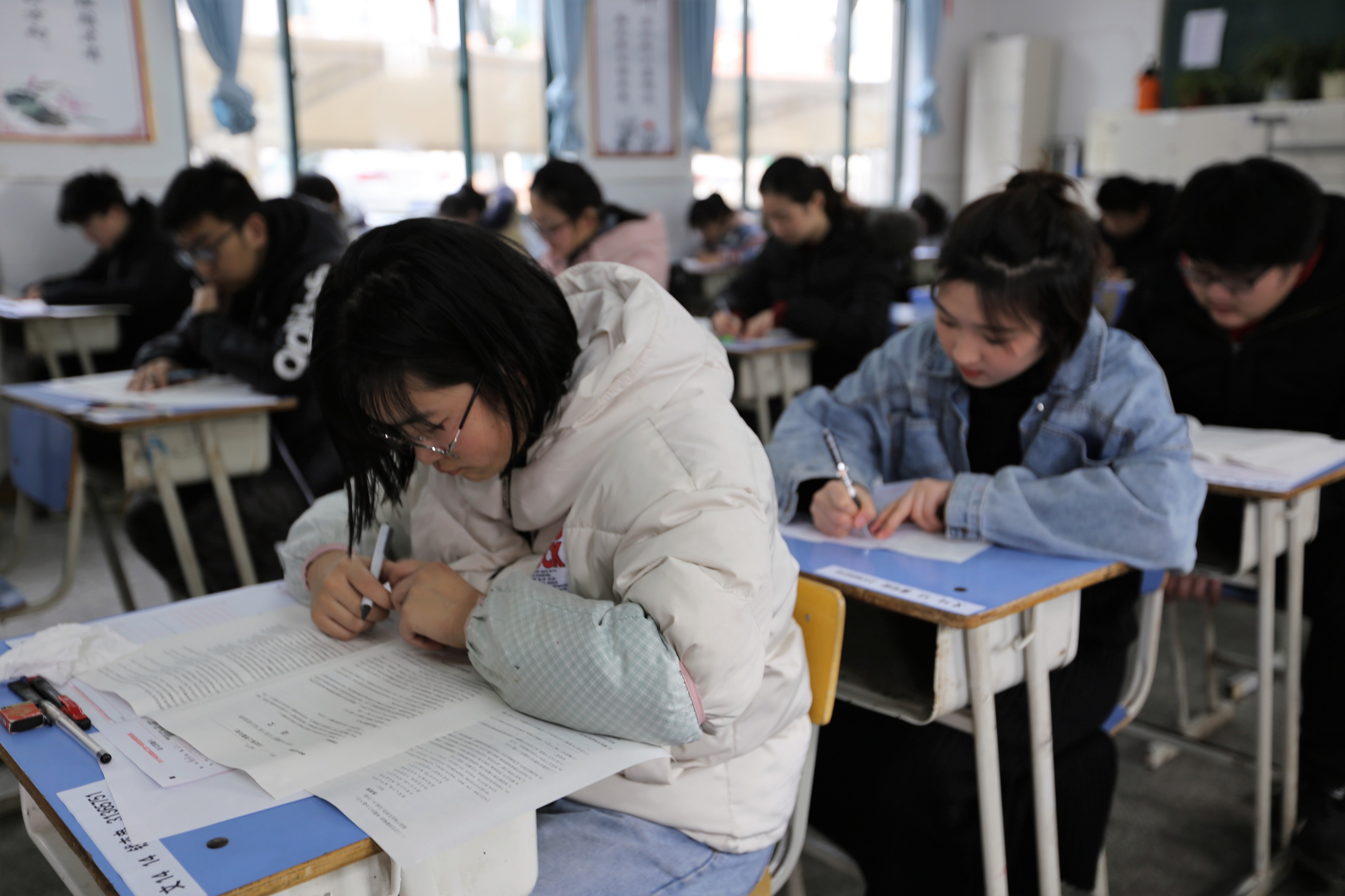 春寒料峭,3月7日八点多钟,上千名学生陆续到达所在的教室。在分好试卷后,各监考老师8点半准时抵达指定的监考教室,按照高考模式进行规范操作。