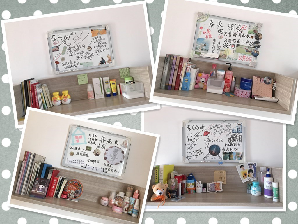 在这桃红柳绿,牡丹盛开,紫藤花儿飘香的美好春天里,学校宿管中心结合市教体局开展的“最美宿舍”文化评比展示活动的要求,开展了一年一度的“宿舍里的春天”宿舍文化评比展示活动。