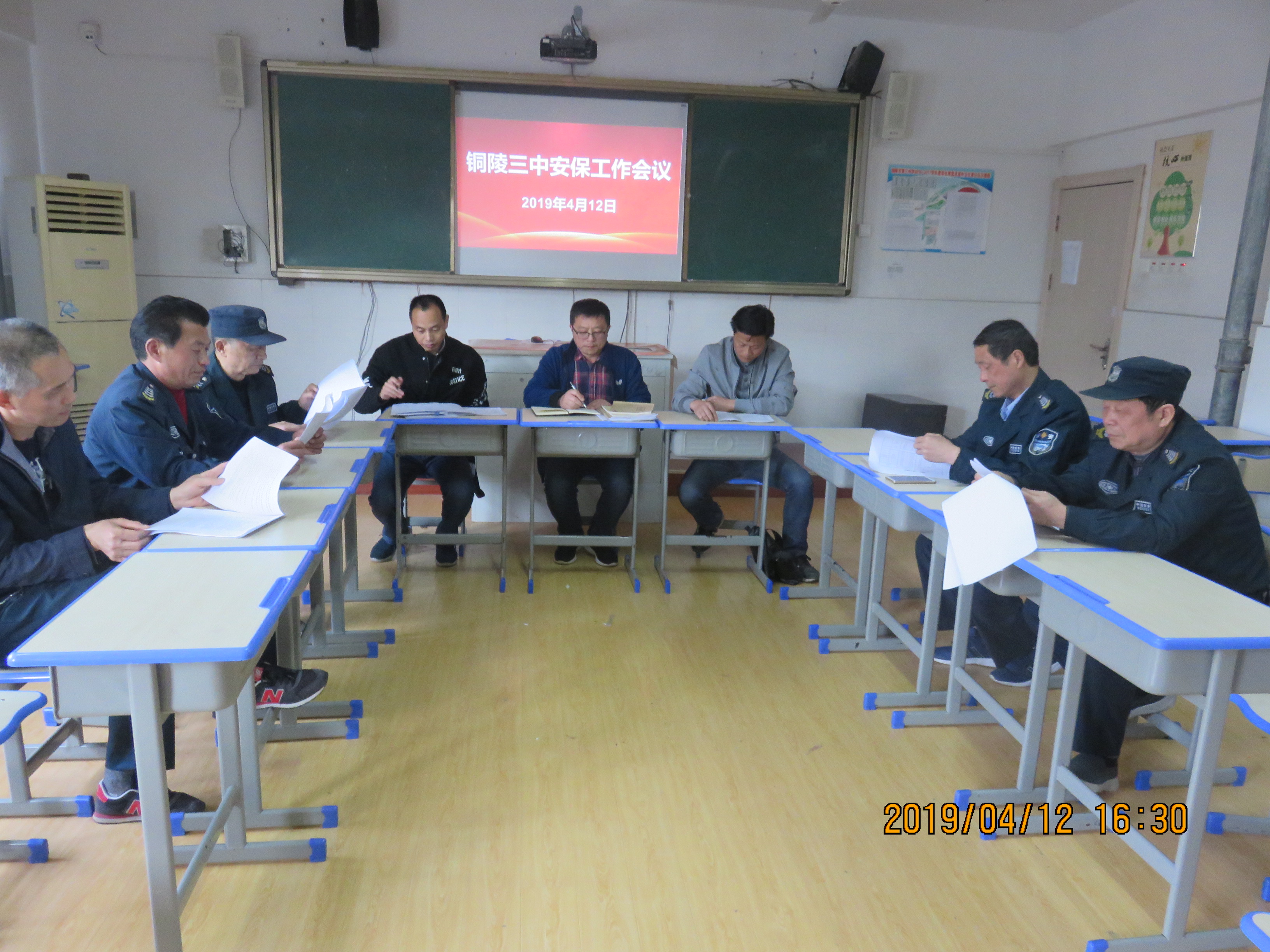 会议强调了近期市教体局及学校对加强安全工作的要求和部署,分析了目前学校在门卫人员及车辆管理方面存在的问题,对下一阶段保安班次做了调整,组织学习了《铜陵市第三中学保安岗位职责》,明确了保安工作职责和范围,促进保安提升工作的责任心。会议就下一阶段《进一步加强校门人员、车辆出入管理的规定》具体操作办法进行了解释,要求保安依规执勤,不急不躁、耐心解释、人性化管理,努力营造一个平安、和谐、文明的校园环境。