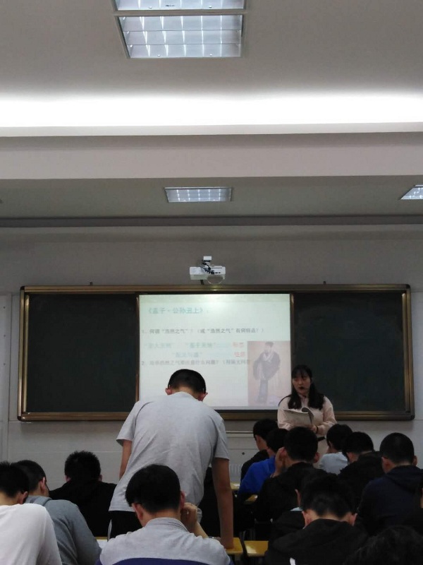 2019年4月17日下午,为落实语文学科组制定的教研活动安排,进一步促进青年教师发展,提升教师专业涵养,铜陵三中语文组在校录播室展开青年教师校内公开课活动。由高二年级的青年教师陈梦雪和孙娟两位老师分别执教选修教材《先秦诸子散文》之《东海之大乐》和《我善养吾浩然之气》。