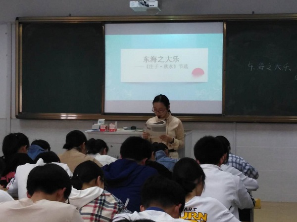 陈梦雪老师的课堂生动活泼,重视学生对于文言现象的积累,教学中通过反复诵读让学生感受“庄文如海”的特点;通过学习探讨,让学生的精神境界有更进一步的提升。孙娟老师的讲授注重文本解读,引导学生在思考中理解“浩然之气”的基本内涵,借鉴孟子立身处世的智慧。两节课的课题均出自选修课本,两位青年教师以自己独具的教学技艺为大家展示了精彩的课堂。