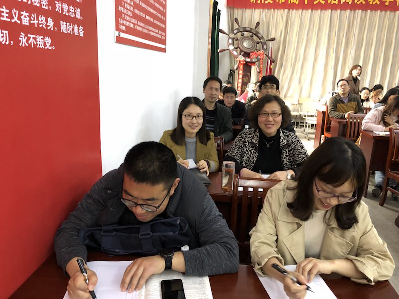 为进一步落实新课标理念,积极推动高中英语教学改革与发展,充分发挥名师工作室的示范引领作用,市教科所组织枞阳县吴昭和名师工作室和义安区王小庆名师工作室于2019年3月29日下午在枞阳县浮山中学开展基于学科育人价值的高中英语阅读教学模式研讨活动。市教科所所长汪大勇、英语教研员章全、高中英语教师、吴昭和、王小庆名师工作室成员以及我校七名教师参加了本次研讨活动。