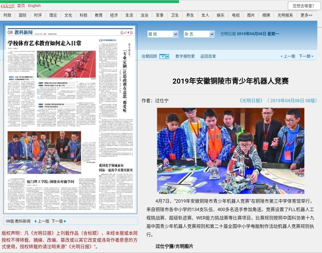 2019年铜陵市青少年机器人竞赛在铜陵三中体育馆开赛。