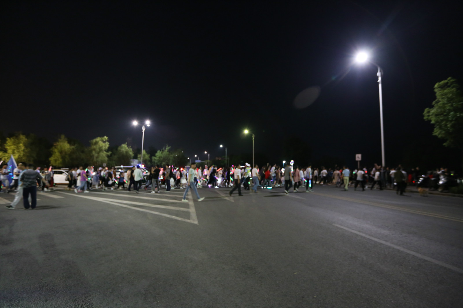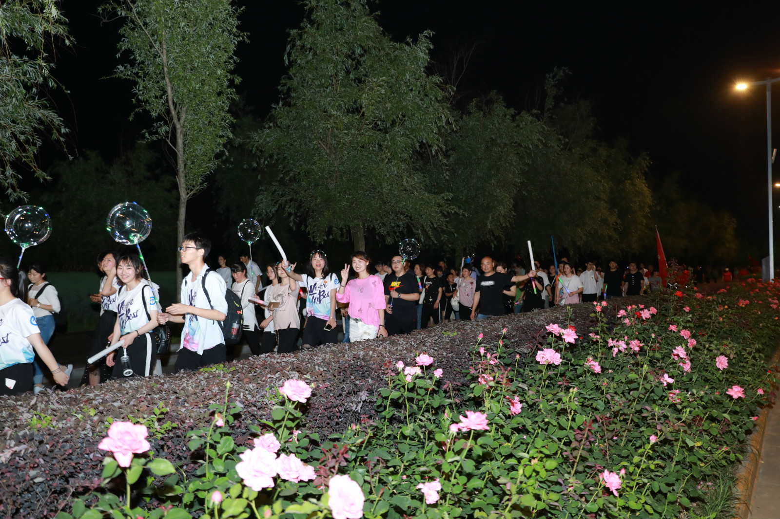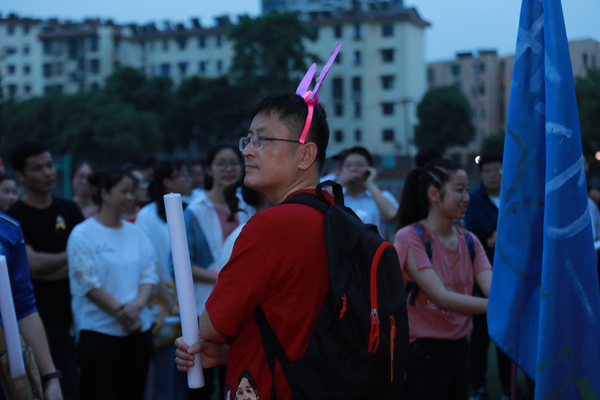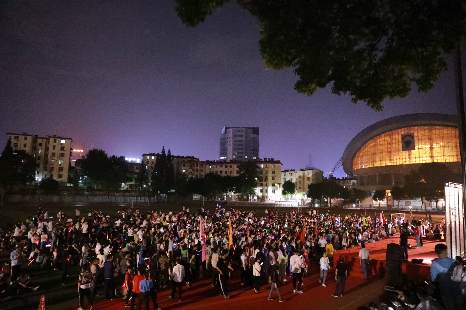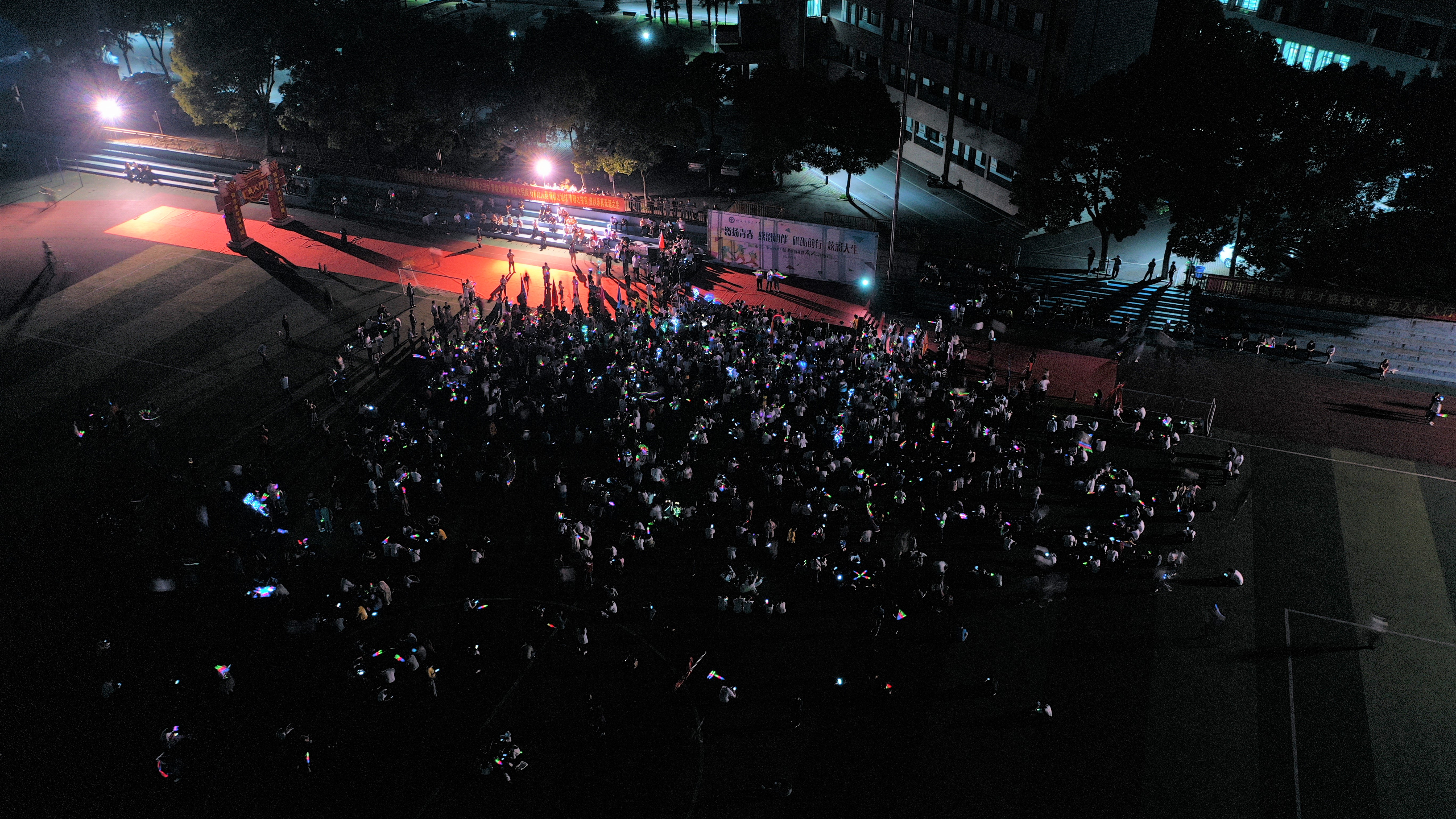 夜行队伍返回学校操场后,部分班级的学生还给大家带来了精彩的节目演出。舞台上的忘情歌声,观看师生随着音乐节拍挥舞的荧光棒,专业摄影师和高大上的航拍器的助阵,让现场高潮迭起。