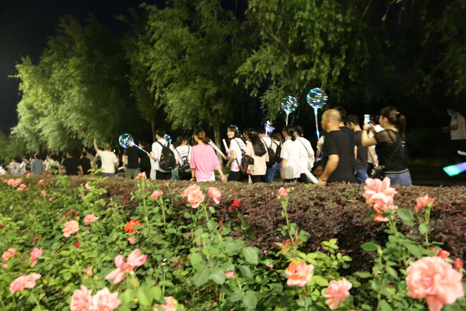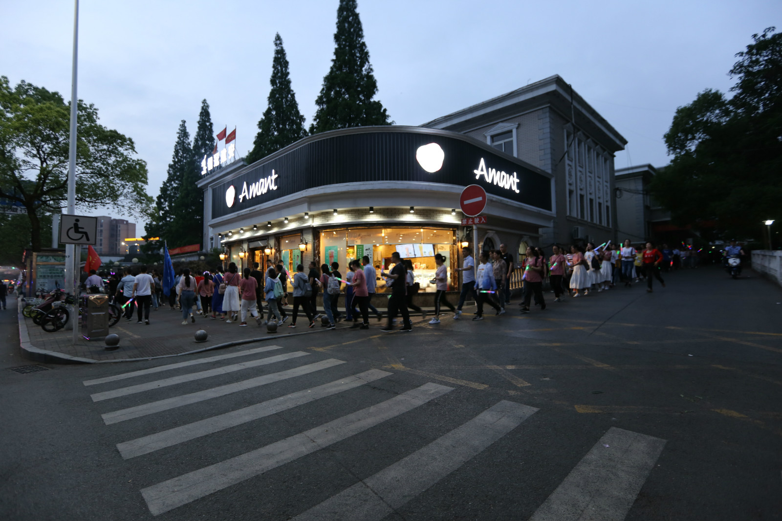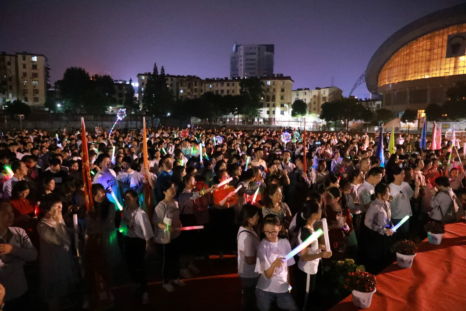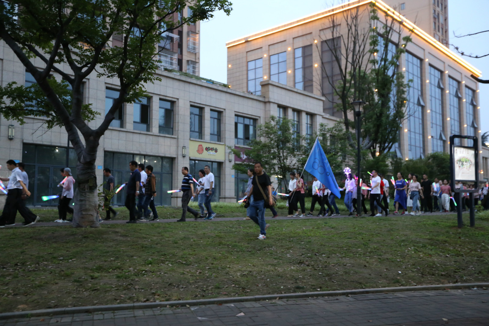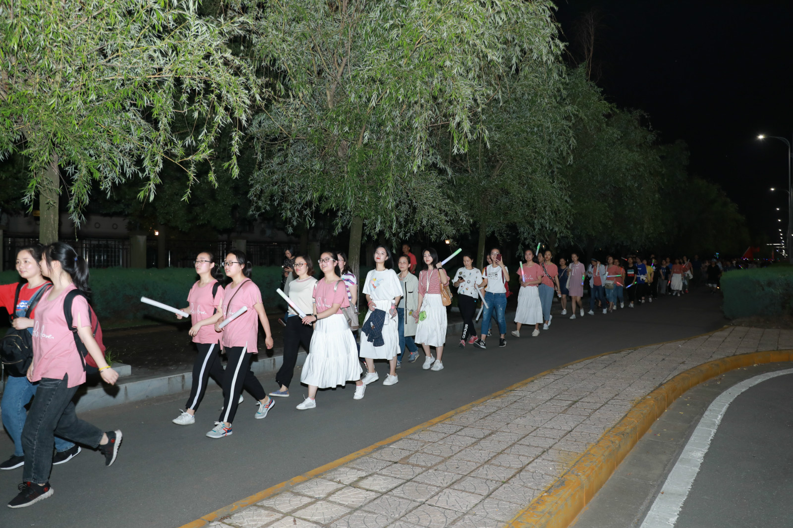 夜行队伍返回学校操场后,部分班级的学生还给大家带来了精彩的节目演出。舞台上的忘情歌声,观看师生随着音乐节拍挥舞的荧光棒,专业摄影师和高大上的航拍器的助阵,让现场高潮迭起。