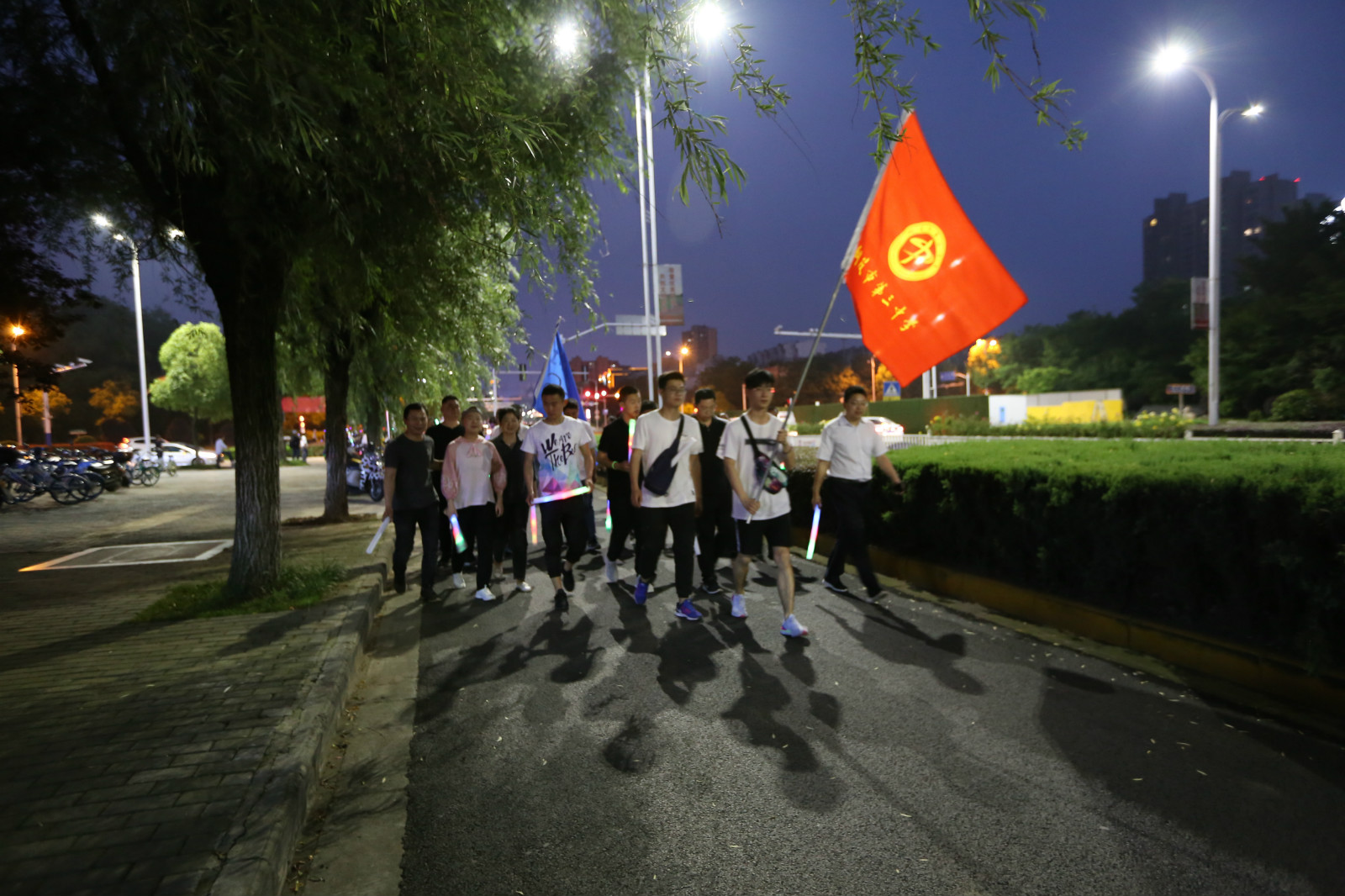 由校团委创意策划的徒步夜行活动,活动路线从学校―育才路―五松一路―长江西路―滨江大道北段―滨湖支路―井湖路―建设东路西段―滨湖路―市政府围合片A―湖东路―育才路―回到学校,全程18华里,寓意18岁,我长大了;18岁,我的青春将更加绚烂;18岁,我的生命将更加光彩!18年,感谢父母陪我踏入成人门;18岁的我,有能力去扛起自己的责任与担当。