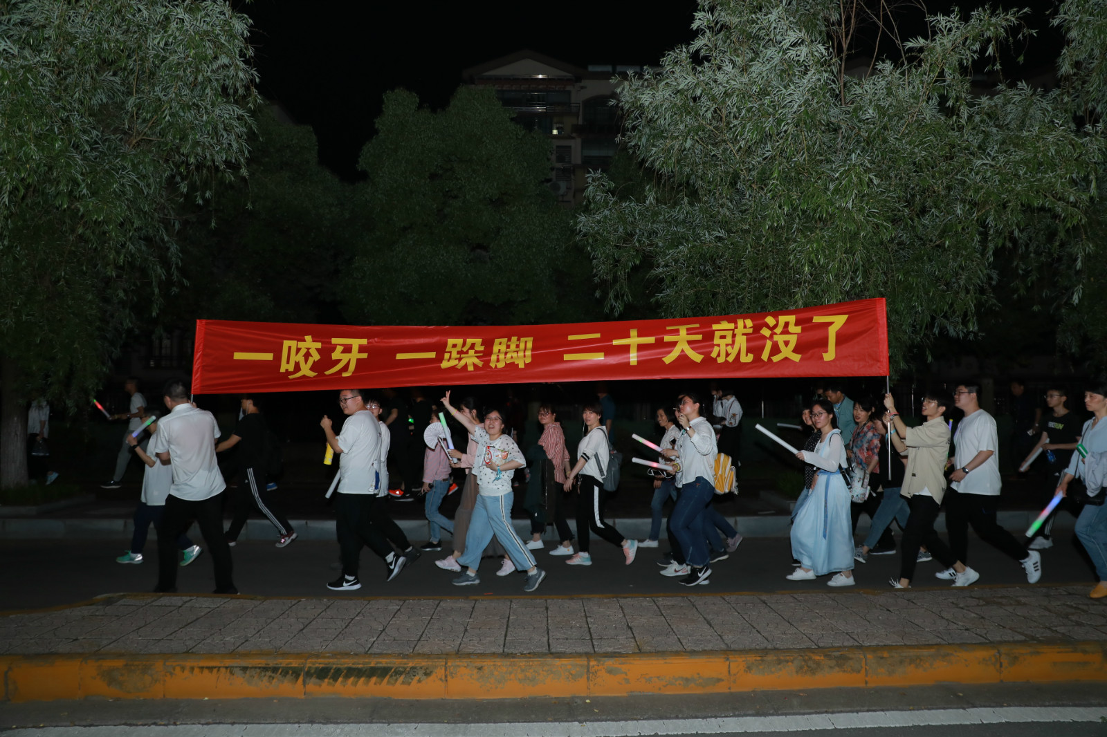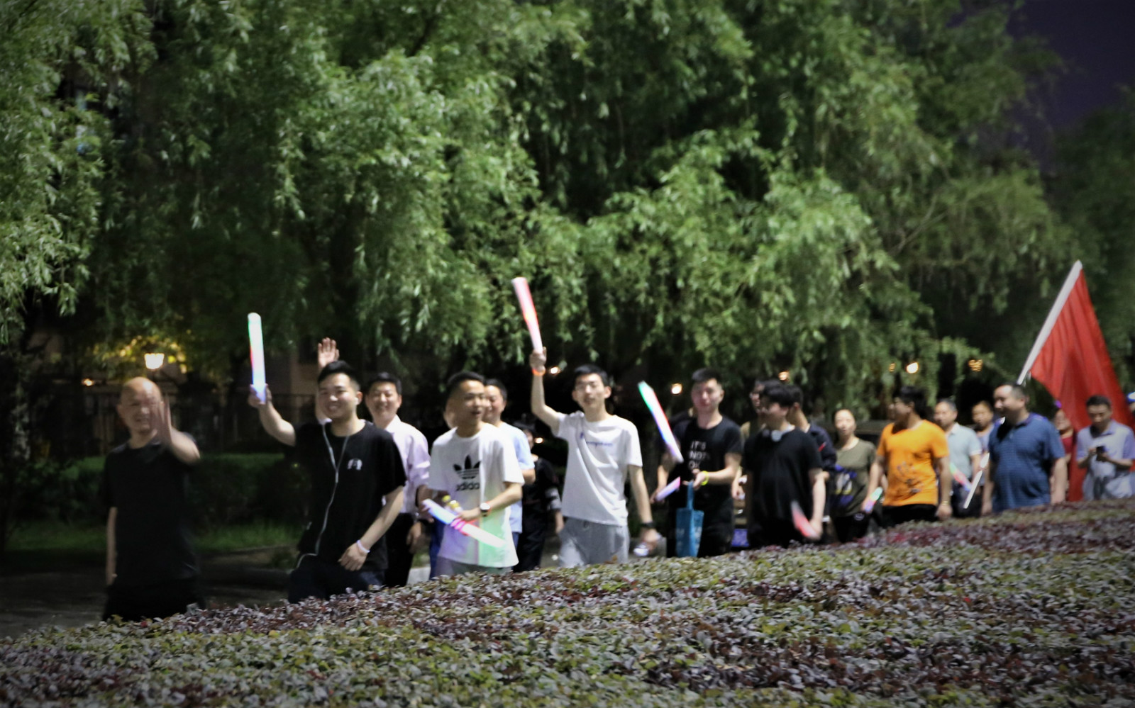 本校讯 在结束当日18岁成人礼两场针对家长的讲座之后, 5月18日晚上6时58分,简短而隆重的“荧光徒步,点亮人生”徒步夜行活动开幕仪式开始,团委书记徐盼发出口令后,铜陵三中党委书记、校长钟士标,副校长叶叶,副校长张国荣等领导一起带领队伍出发。