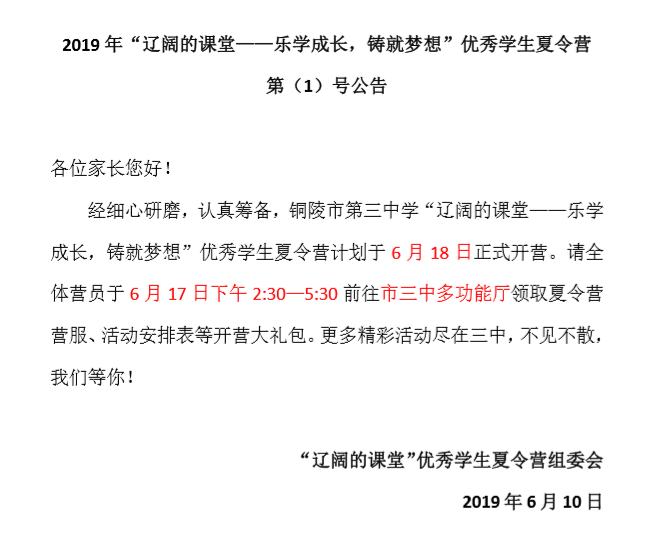 2019优秀学生夏令营第(1)号公告