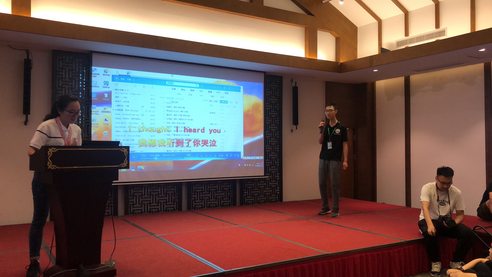 随队的陈应德老师和丁睿老师以一首《相思风雨中》暖场,